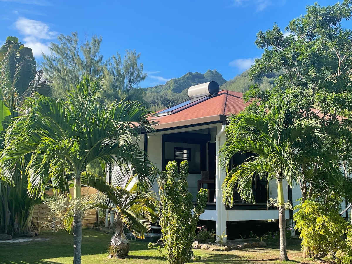 À Moorea dans la Baie de Cook, notre bungalow pour 2 personnes (BB Ok si vous êtes équipés) est situé sur le terrain de notre maison familiale. Romantique, spacieux, confort(clim, lit QSize, cuisine, salle d'eau, wc, terrasse privée) il fait face a la vue lagon & aux espaces partagés : jardin avec piscine & espace barbecue. Nous partageons nos bons plans, astuces, moments avec notre famille et nos supers toutous avec plaisir. Option spa bulles possible sur votre terrasse privée sur demande.