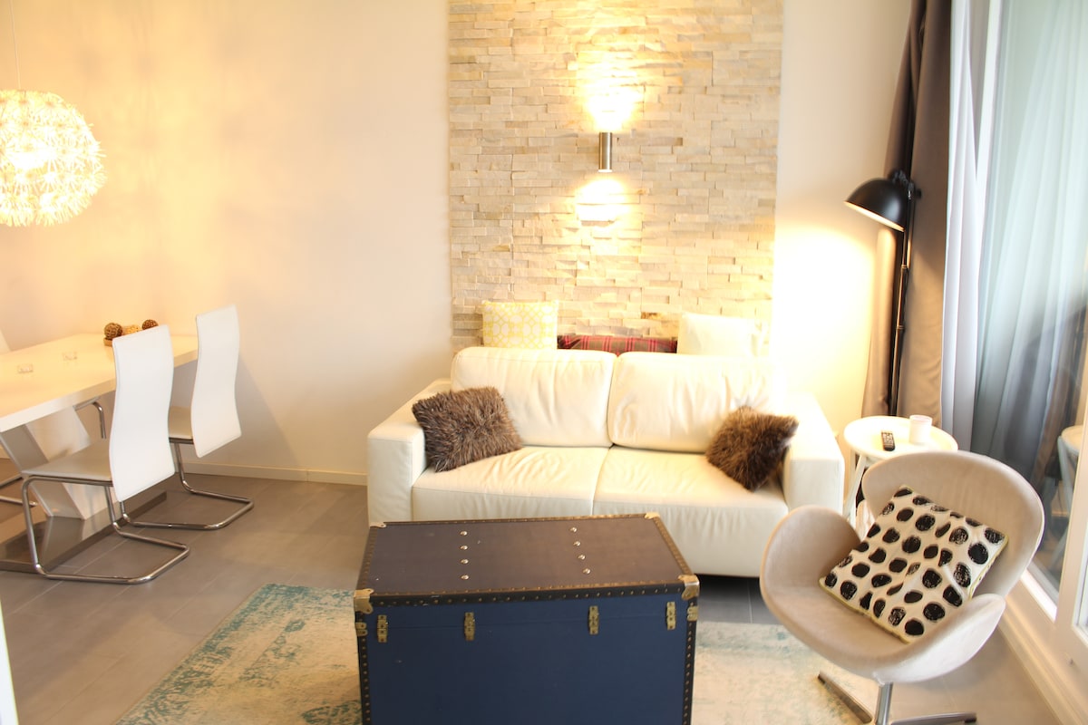 Welcome to Rheingold Apartments and this beautiful penthouse in Munich Moosach. In a good location between the Olympic Park and the Olympic shopping center, this cozy, warmly furnished loft offers space for 6 guests and the following amenities: - 2 separate bedrooms with king-size bed and queen-size box spring bed - huge living/dining area with sofa bed - fully equipped kitchen with dishwasher, Nespresso machine and tea - High-speed internet, smart TV and Netflix access