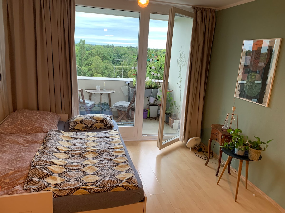 带阳台的舒适单间公寓,位于慕尼黑南部绿地