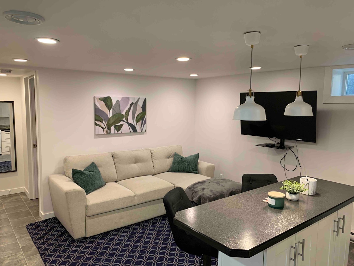 The longer you stay, the more you save! 7 days or more = 15% saved! 28 days or more = 25% saved! Welcome to your home away from home! Located in Moose Jaw’s historic downtown, this modern basement suite is fully equipped for your stay. Just a 5 minute walk from a plethora of cozy coffee shops, delicious restaurants, lush parks and Moose Jaw’s downtown charm!