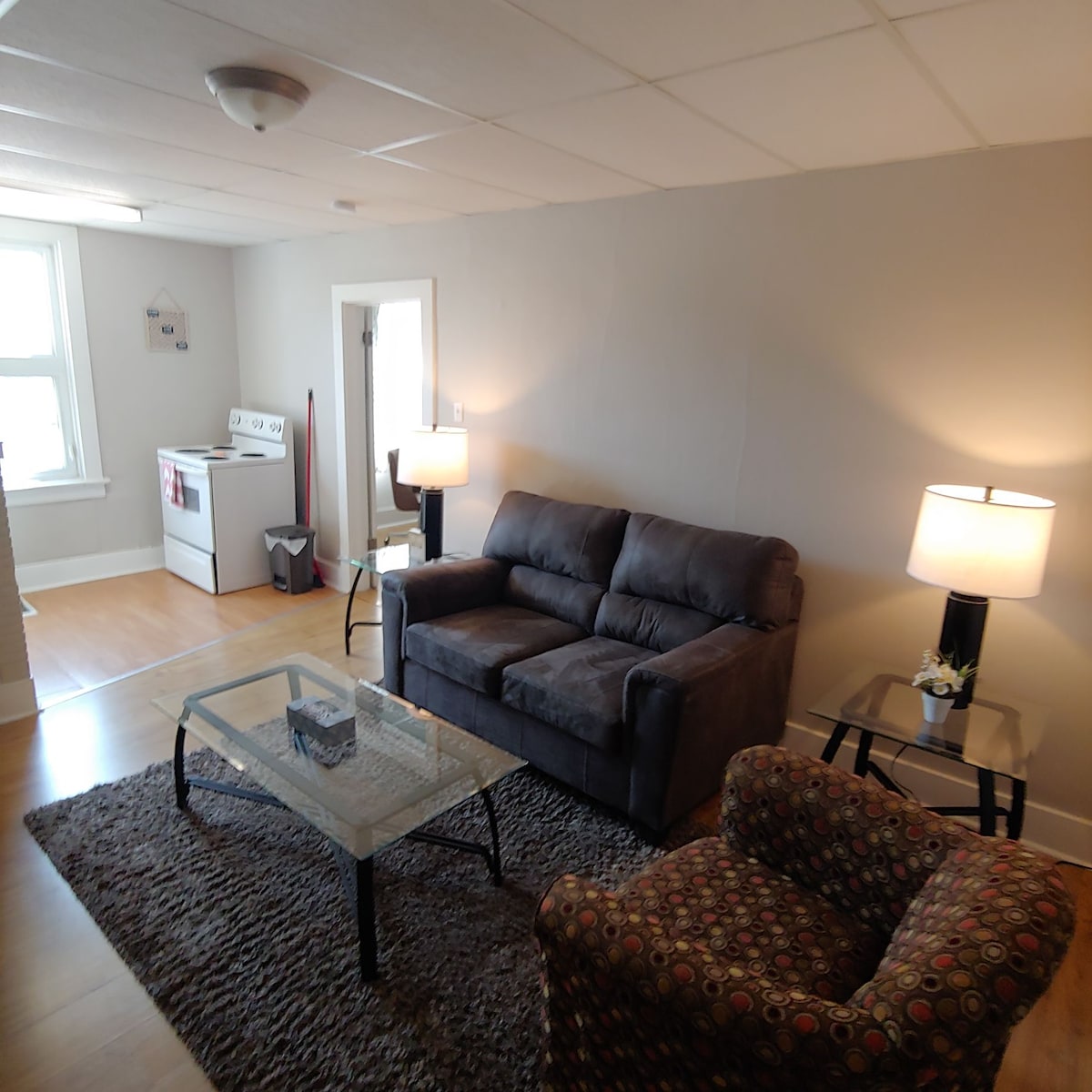 If you want to be in downtown Moose Jaw, close to everything but you don't need much space, Three's Company is for you. This is a newly renovated suite. It has everything a group of three could need for a stay in Moose Jaw. The brand new kitchen includes a stove, fridge and dishwasher. There is also a full size washer and dryer in case you are staying longer or you need to do a laundry on your cross Canada road trip. Pets are welcome, except on the bed, and you must clean up after them.