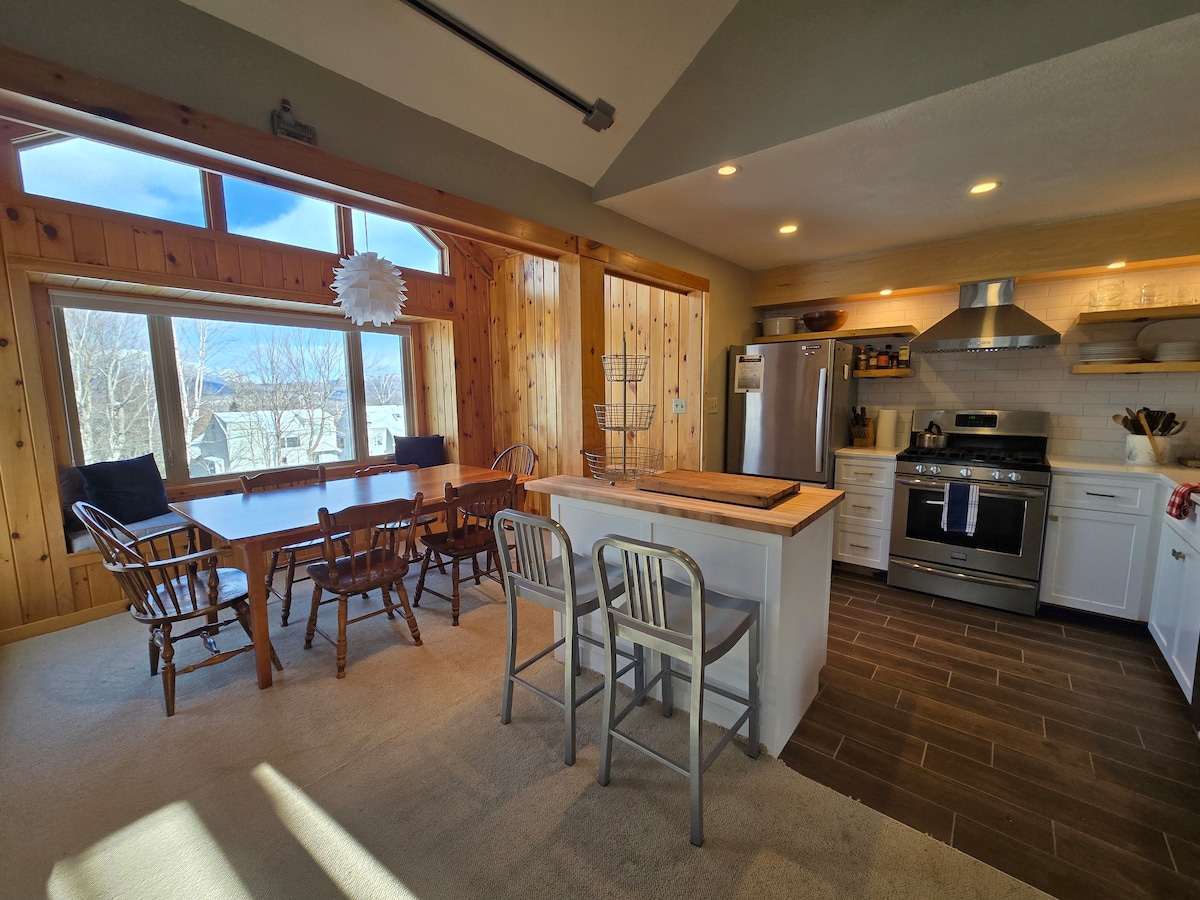 Perched above the Piscataquis River, this historic barn was beautifully renovated into a rustic luxury retreat. Two full stories plus a loft, with relaxing river views on all levels. Gourmet kitchen/dining area with a fireplace & a cozy yet spacious lounge upstairs. Enjoy the garden and patio overlooking the river or unwind in the luxurious copper soaking tub in the loft. Designed for a couple & perfect for romantic getaways, yet comfortable to sleep up to 4 guests.