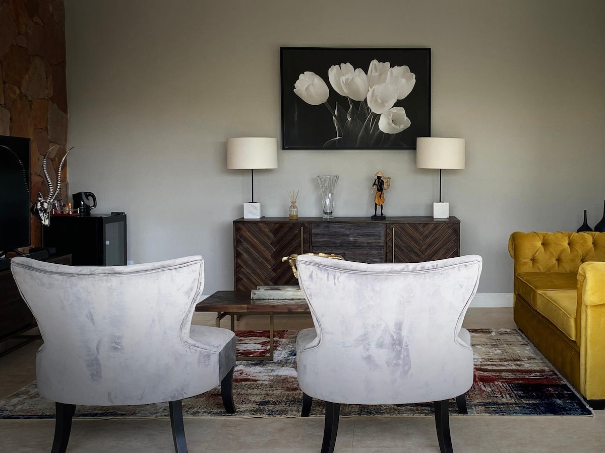 A stone throw away from the world famous Kruger National Park - this luxurious cottage is situated on the Hans Merensky golf estate where Giraffes, Impala & Hippos. The private cottage boast with privacy, luxury and an African experience which will leave guests speechless. The cottage has a self catering fully equipped kitchen, a queen size bed and a small living area. The Golf course was recently redesigned with new features - perfect to enjoy an unforgettable round of golf!