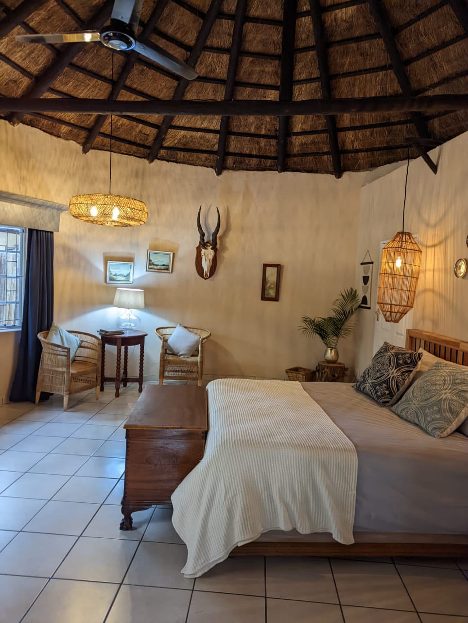 Beautiful farm experience with breathtaking sunsets. The space is comfortable, well equipped and newly renovated, it consists of a large lounge area, dining room and kitchen. There are 3 bedrooms, 2 of these share a full bathroom with a shower and 1 of these has its own en suite bathroom with a luxurious bath. There is a patio overlooking indigenous bush, waterfall and a lake. A great feature of the property is its location, centrally situated near the main road and numerous wedding venues.