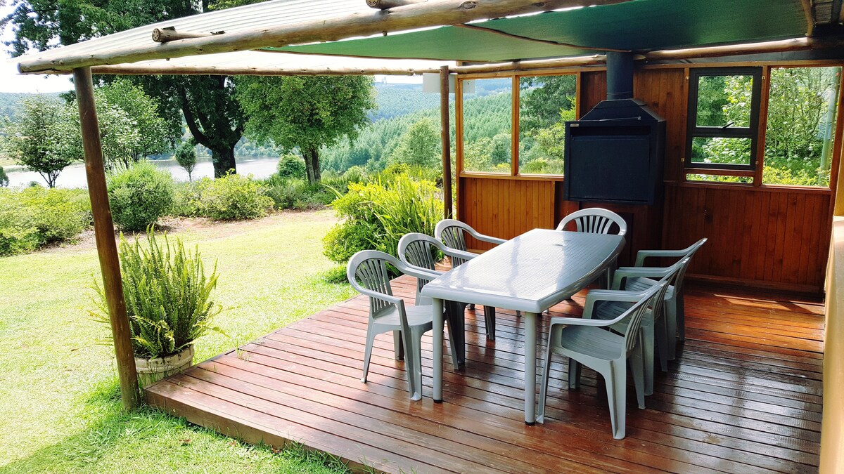 Rustic semi-detached four bedroom cottage which has four bedrooms; 3 with queen beds in each and one with 2 single beds. Two bathrooms with showers. The open plan living area consists of a lounge and dining room. The kitchen is fully equipped. The Fireplace inside is for those chilly nights here on the mountain. There is an enclosed stoep and a Braai on the outside deck, which overlooks our 17 hectare dam also known as Stanford Lake, with the Wolkberg Mountains in the background.