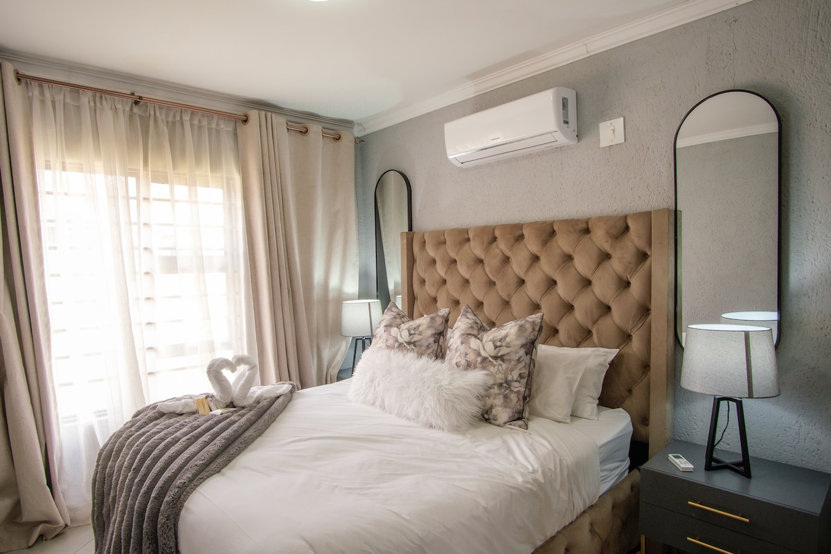 This stunning newly built spacious villa is set in the bustling bush town of Hoedspruit in Limpopo. This lovely home is perfect for families or couples traveling together. A full stocked kitchen and scullery area, outside BBQ facilities( wood &gas) and a splash pool to name a few. All bedrooms are air-conditioned . Corkwood villa is equipped for loadshedding. Each bedroom boasting a bath, shower and outside shower nestled on an outside deck.
