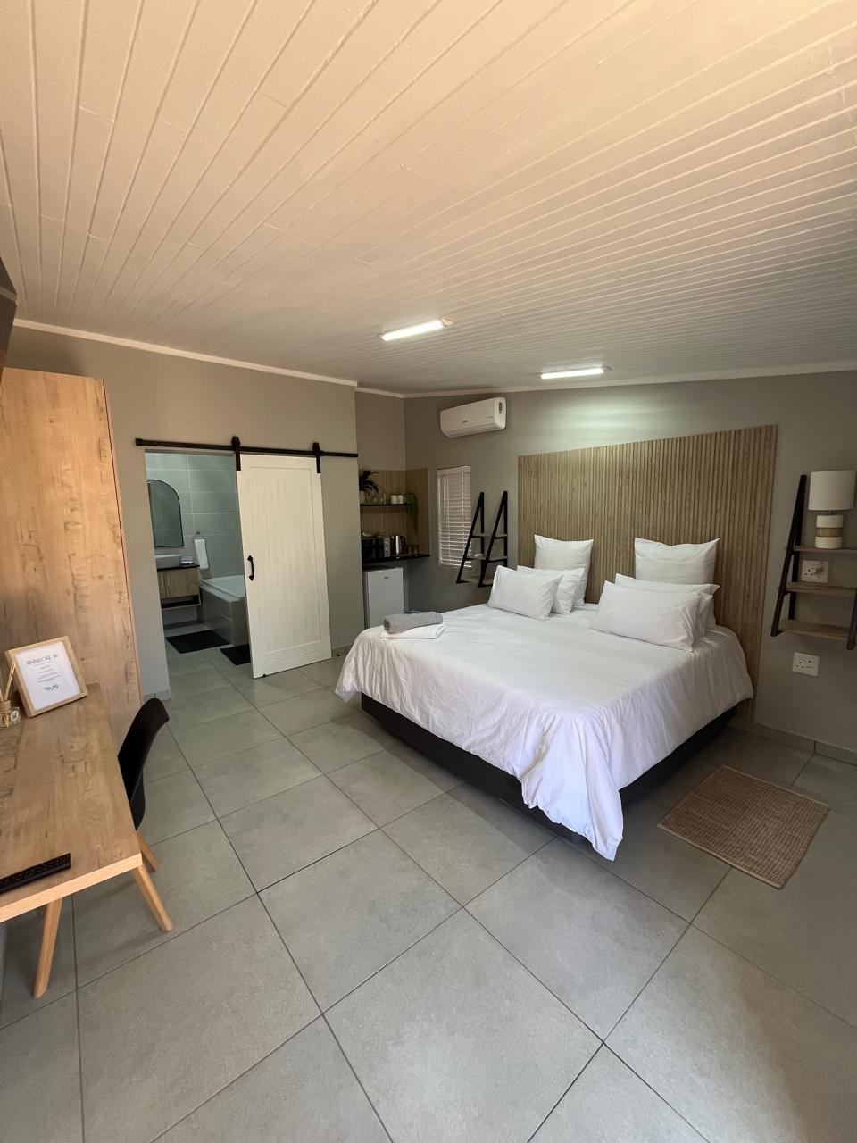 Modern Comfort in the Heart of Tzaneen Stylish and modern suite in Tzaneen! Enjoy a king-size bed, air conditioning, smart TV, and a spacious bathroom with both bath and shower. The calm, elegant design and work-friendly desk make it ideal for business or leisure stays. Conveniently located close to shops, hospitals and schools perfect for a comfortable and relaxing stay in beautiful Tzaneen.