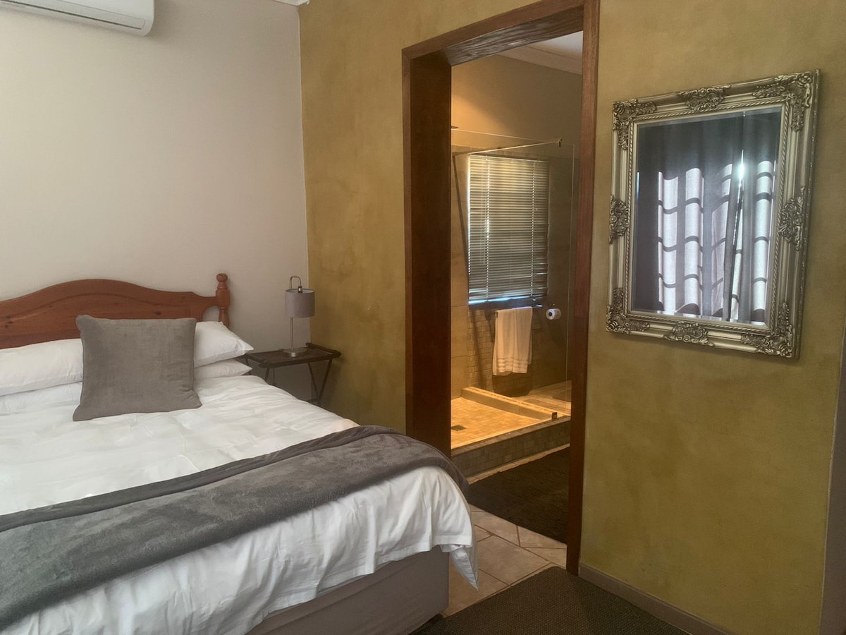 You won’t forget your time in this romantic, tranquil and private unit. Newly renovated in a modern yet classic style, ideal for a couple getaway or business visit. The unit is fitted with a lovely swimming pool, large outdoor patio and private braai area, a must visit!! HWE is one of the most secure places to stay in the area and you are just 2.5 km away from the town which is cozy with everything that you will need. NO CHILDREN ALLOWED.