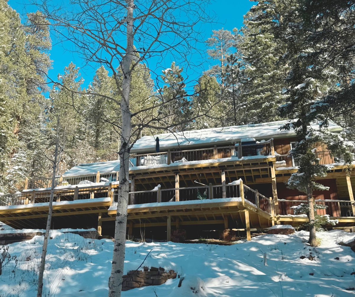 You won’t forget the peaceful surroundings of this rustic destination. Relax with the whole family at this cabin in one of the most scenic spots in New Mexico. You will have 16 acres of ranch land all to yourself, and a private pond outside your back door. This property is ideal for hunters, those seeking to get away from it all yet still need modern amenities, and large groups. Our cabin is near world class skiing, a historic town, and dining options.