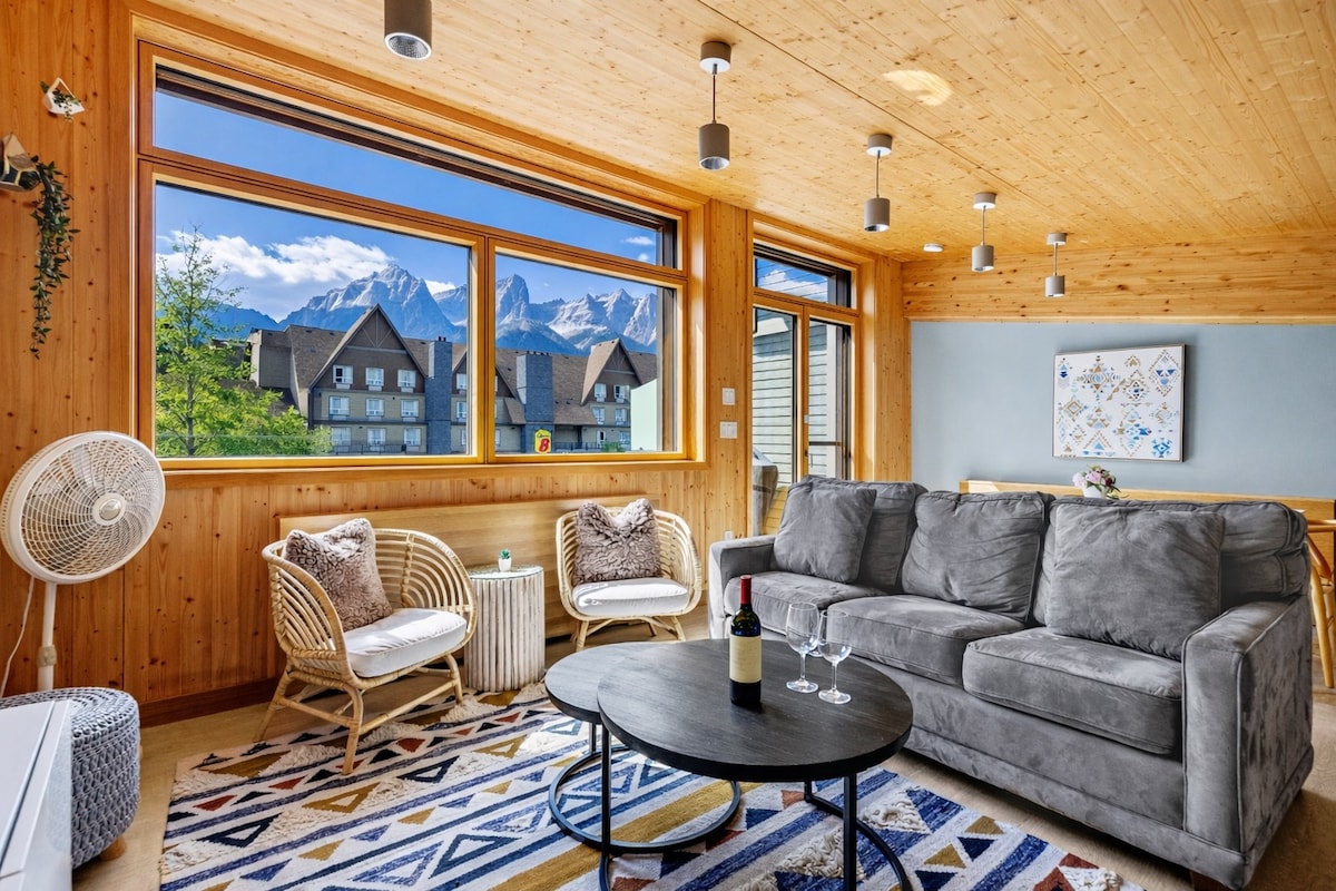 This newly constructed top-floor suite offers an exceptional living experience with breathtaking mountain views. Enjoy premium amenities like the communal rooftop hot tubs or the custom-built wet sauna. Host a BBQ and unwind on your two expansive private balconies. As night falls, gather around the fire table and marvel at the starry skies. Just a short drive from Banff, this property blends luxury and convenience for the ideal mountain getaway.