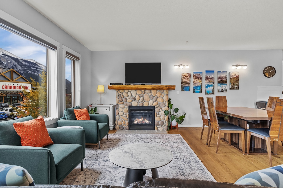 Welcome to your vacation! The decor is contemporary, tasteful and inviting. The open concept living room features large windows that bring in natural light & frames the stunning mountain views. The bedroom boasts a king sized bed w/ vaulted ceilings. Enjoy heated bathroom floors, dual sinks, rain shower & a tub. A large private rooftop deck provides panoramic views of the Rockies! Located a short walk from Banff town centre and offers a private guest entrance.