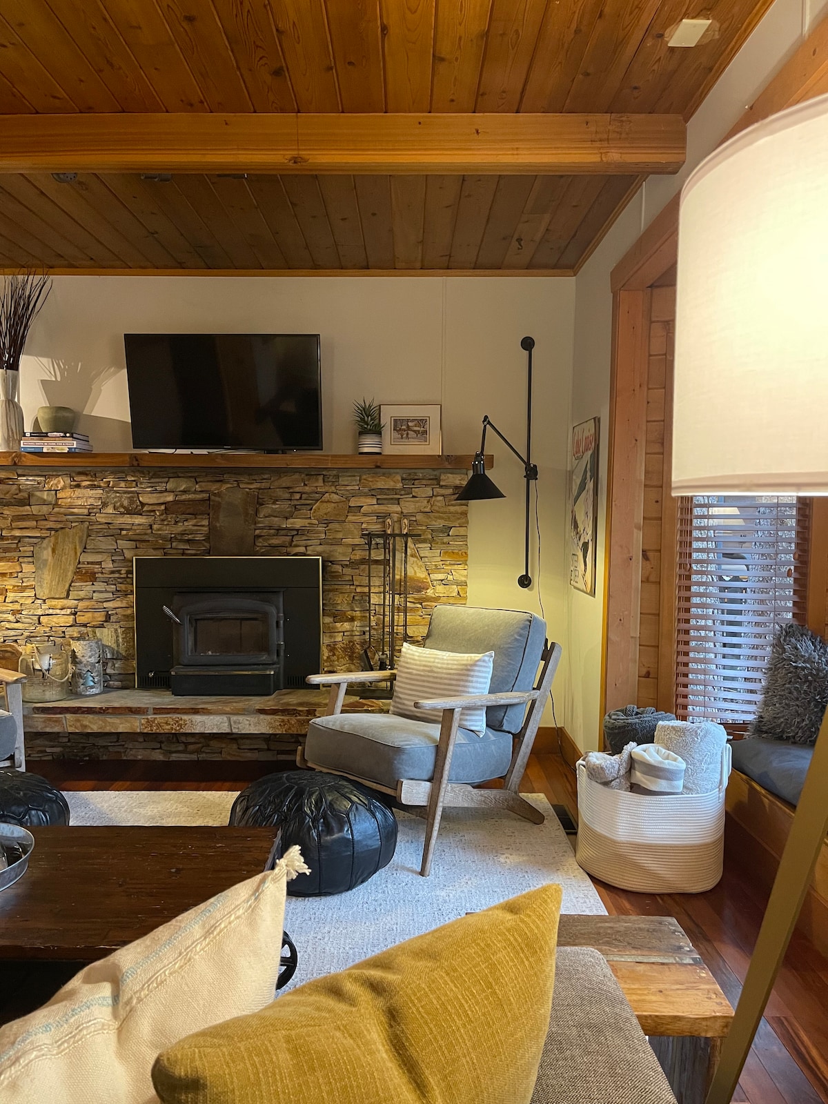 Experience unparalleled luxury in our newly built, air-conditioned one-story chalet. Featuring a spacious deck, a fully equipped custom kitchen, and a large, stylish bathroom, this retreat offers the perfect blend of comfort and sophistication. Enjoy the cozy bedroom adorned with 11-foot ceilings, creating an inviting atmosphere. This distinctive property boasts a unique style that sets it apart, making it an exceptional choice for your getaway.