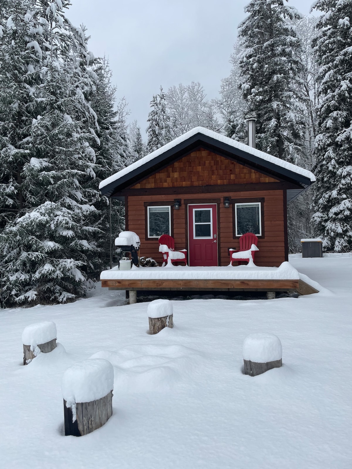 We are located on Mnt 7 in a rural subdivision. The newly built Cabins (Blue Spruce & White Pine) are a warm space to stay & relax. Our kitchenette is fully stocked with most of the essentials (No stove or oven) along with a bbq on the deck. There is a full shower in the spacious bathroom & a fireplace in the living area. We have a separate entrance, ample parking and paved road to the property for your convenience.
