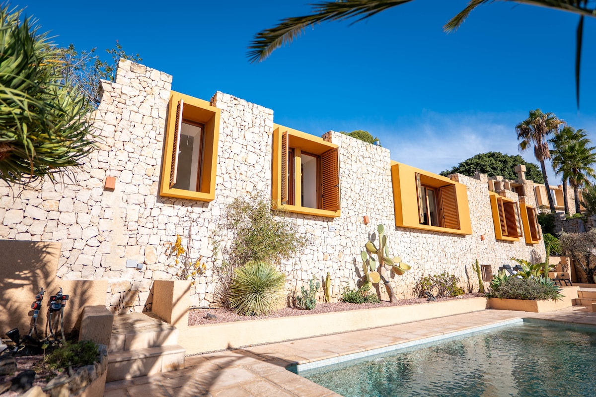 Preciosa casa, piscina privada climatizada, en El Tosalet, zona exclusiva, muy tranquila y bien comunicada a 5 minutos en bici o en coche de bonitas playas y de bares y restaurantes. Ven a disfrutar del estilo de vida Mediterraneo. Increíbles vistas al mar, 4 habitaciones y 4 baños en suite más otra también con su baño que tiene acceso desde la piscina y tiene una altura de techo y entrada reducida. Climatización por suelo radiante y aire acondicionado, Wifi de 100MB, huerto y árboles frutales.
