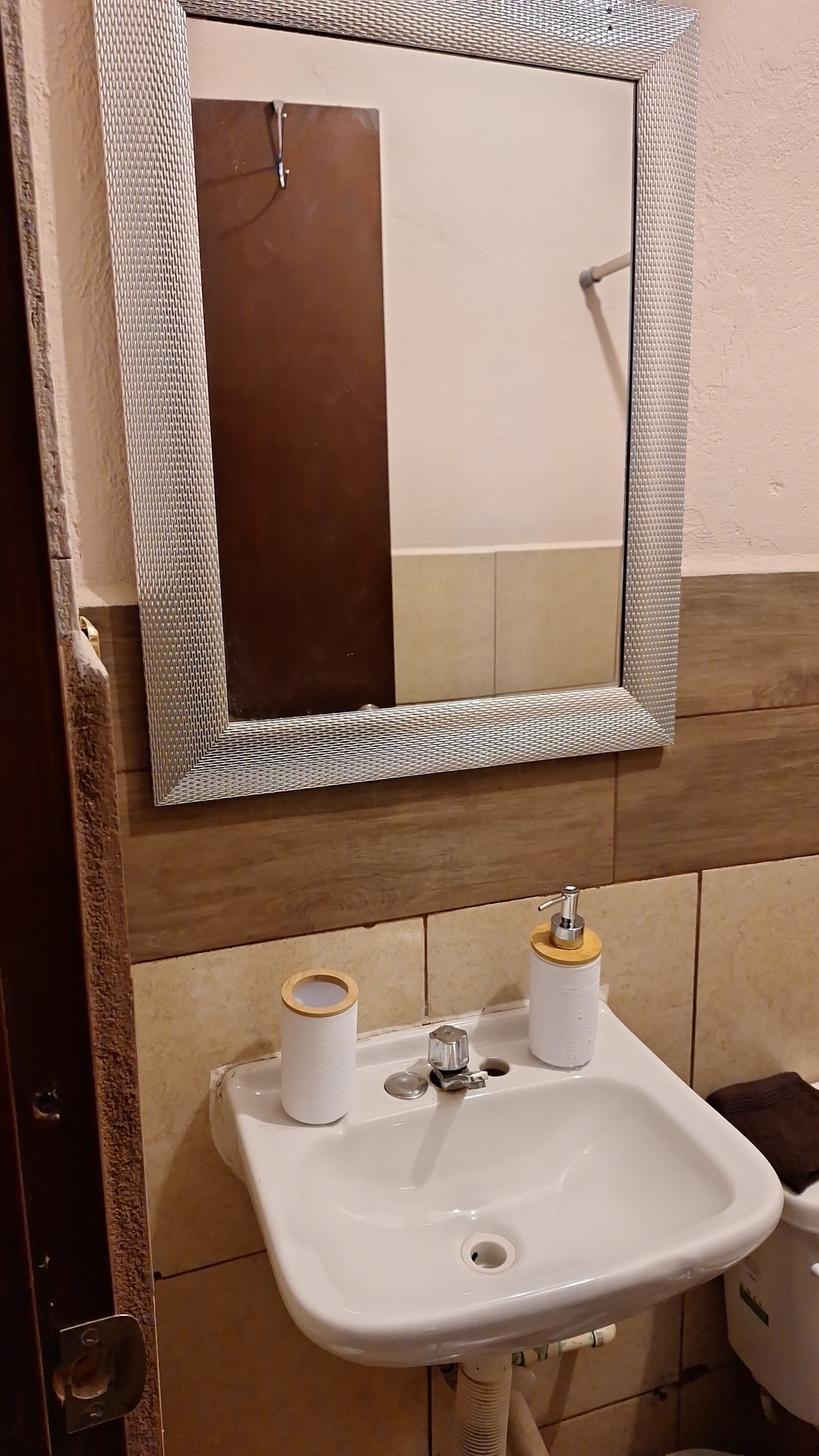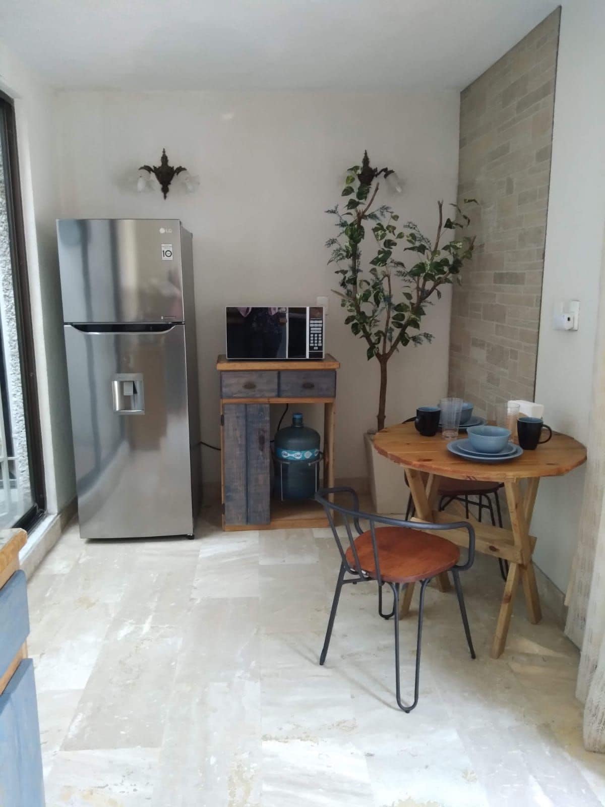 Pequeño departamento vintage con estilo y decoración antiguo muy acogedor en planta alta con acceso independiente ideal para vivir una gran experiencia. El departamento se encuentra a media cuadra de la Ave Hidalgo (Ave principal de Tampico que cruza la ciudad) en un zona segura y tranquila muy cerca de áreas turísticas. Ideal para 3 personas, 2 compartiendo cama matrimonial y 1 en cama individual dentro de la misma habitación, aire acondicionado mini-split en la habitación.
