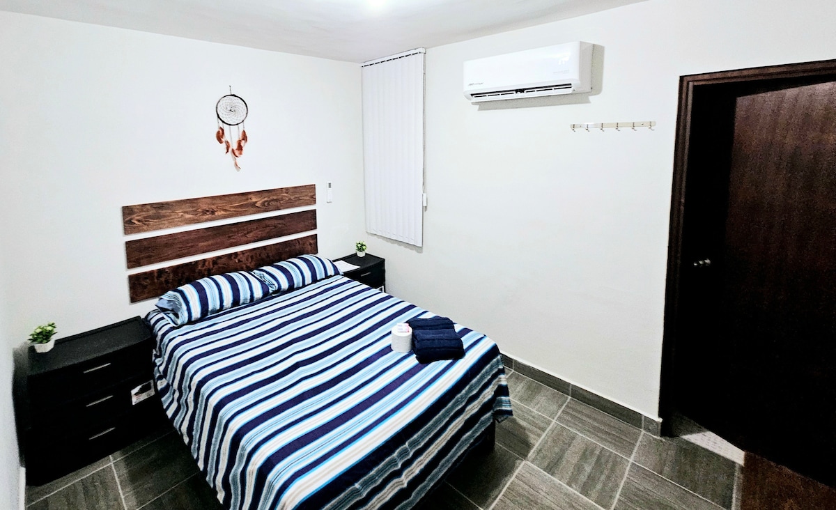 Relájate en este espacio tranquilo muy cerca del aeropuerto, del estadio, de tiendas de conveniencia, supermercados, farmacias y a 5 minutos de Playa Miramar. Disfruta de una cómoda cama Queen Size