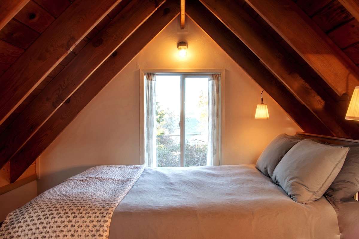 Sweet cedar shingled cabin on Sunset Avenue just a short walk to town, and an even shorter walk to the beach! Queen size bed tucked upstairs under the vaulted ceiling with peek-a-boo view of the water. Freshly renovated, old school Orcas style. Hardwood & Marmoleum floors throughout, pine paneling & subway tile in kitchen and bathroom. French door slider opens to deck, perfect for enjoying your morning coffee. #weaccept. PPROVO-17-0042