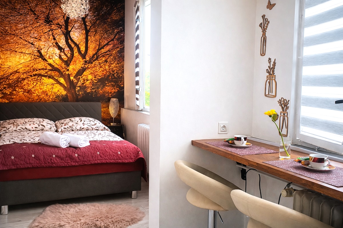 Srdečně vás zveme do našeho nově zrekonstruovaného bytečku s kompletním moderním vybavením, který možná patří k ostravskému kouzlu – kontrast mezi starým zevnějškem a novým, pohodlným interiérem. Dokonalé útočiště pro poklidné zastavení či průzkum města v klidné lokalitě. Pár minut pěšky je Nová radnice, krásný park a procházkou kolem řeky se do 10 minut dostanete do centra. Z tohoto útulného malého bytečku máte město na dosah, stejně jako dálnici či zoo.