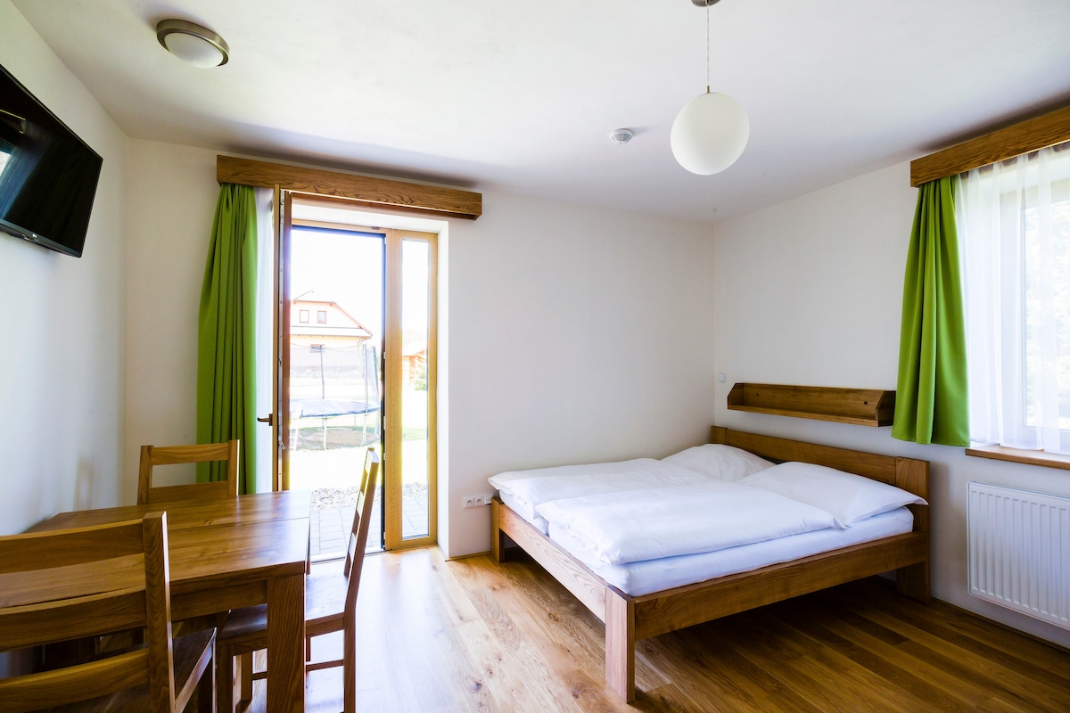 IN ENGLISH: I offer bright 2 rooms flat with living room on the south side. Fully equipped, wifi included, TV + Netflix for your use, free street parking, minutes walk to shops, restaurants and local bus stops. Easy access. ČESKY: Nabízím slunný 2 pokojový byt s obývákem na jižní stranu. Plně vybaven, čerstvě po rekonstrukci, wifi v ceně, TV + Netflix, zdarma parkování na ulici, jen minuty chůze do obchodu, restaurací a městské dopravy. Snadný přístup.