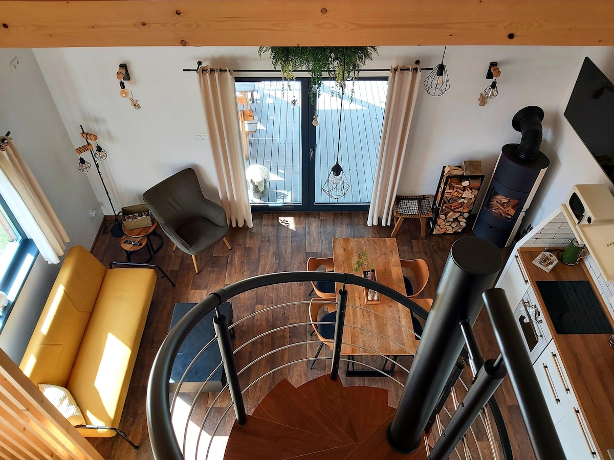 Jedná se o nadstandardně řešený apartmán s terasou a wellness. Vše jako součást nově zrekonstruované původní chalupy v útulném místě polosamoty Beskyd. Pokud jste náročnými klienty a oceníte se svým partnerem nebo rodinou kvalitní architekturu a design, jste u nás správně. Industriální loftový prostor s manželskou visutou postelí v patře, vlastní kamna, soukromá terasa a plně vybavená kuchyň. Dopřejte si u nás odpočinku a zapomeňte na všechen ten shon v naší finské sauně či vířivce. Těšíme se!