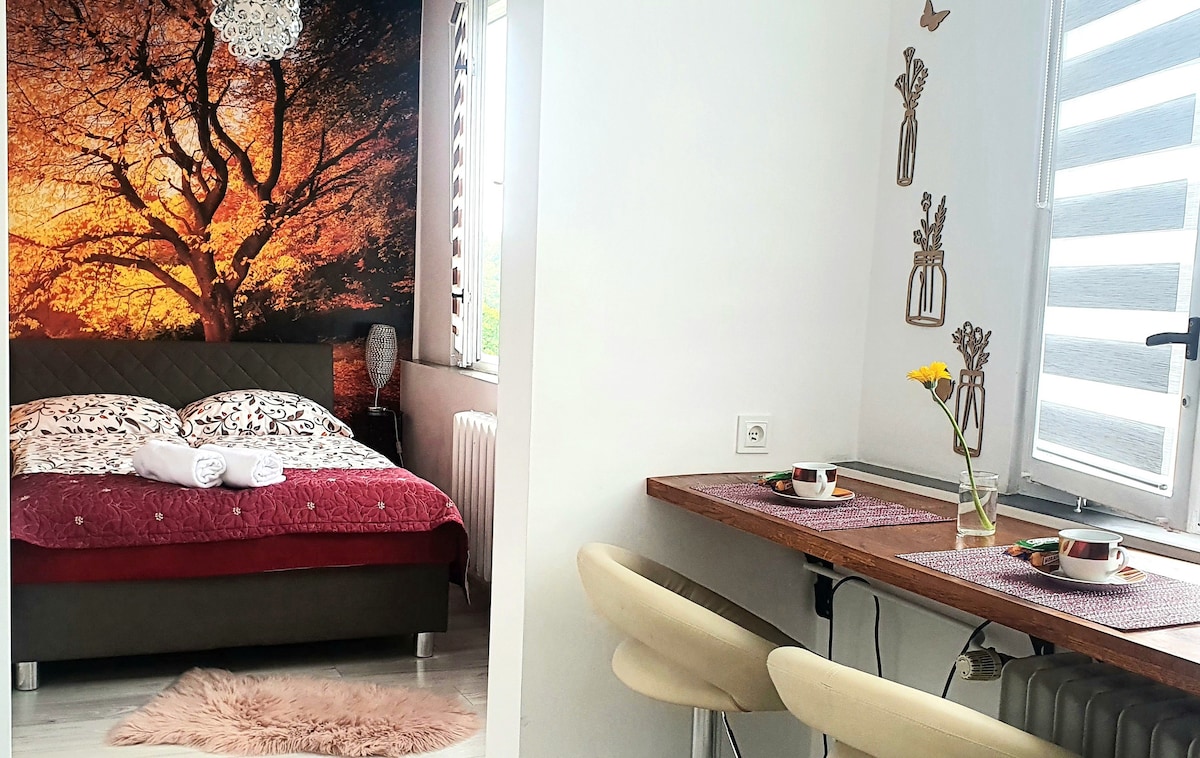 全新、阳光明媚的单间公寓,步行10分钟即可抵达市中心