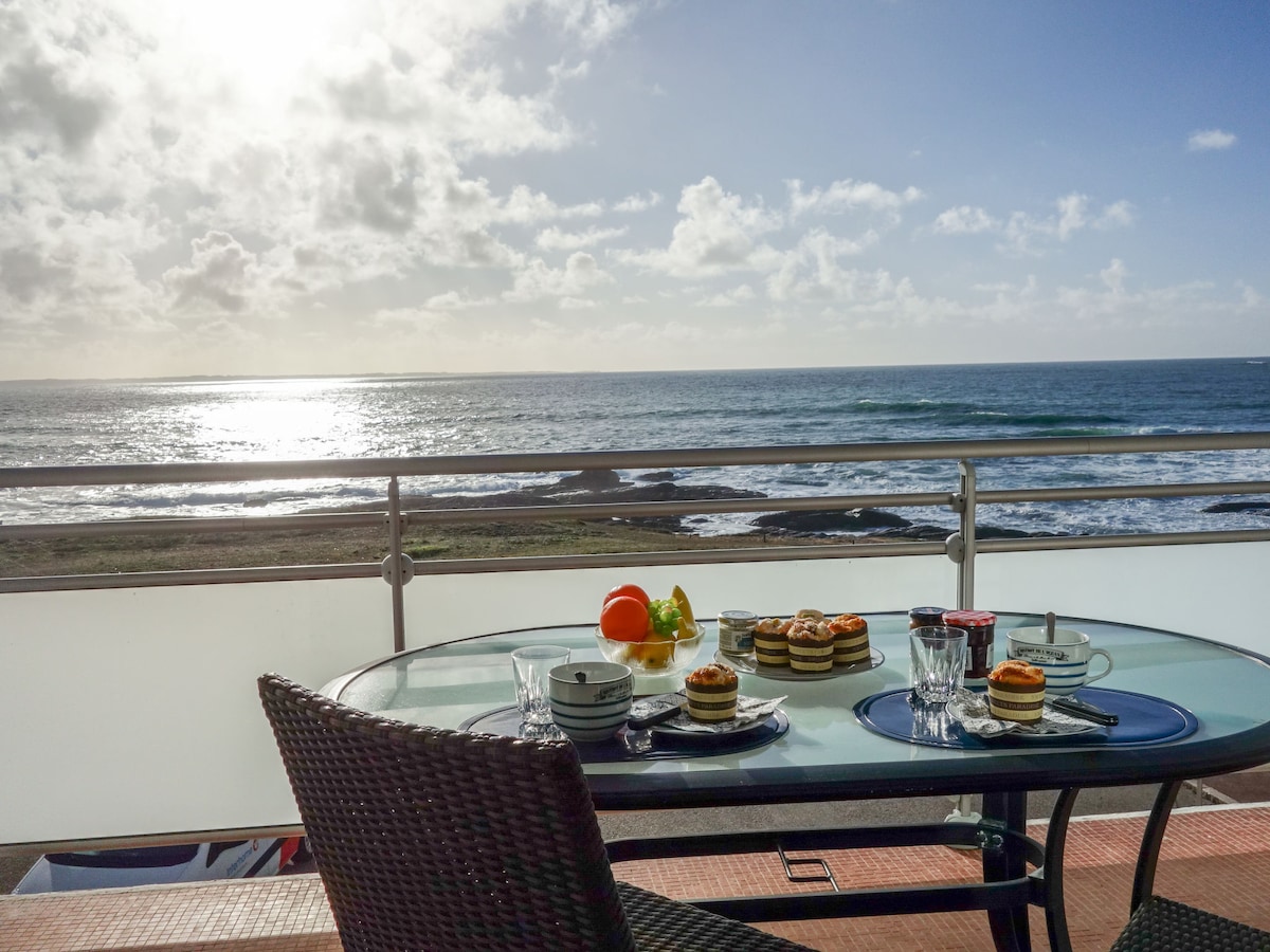 All discounts are already included, please go ahead and book the property if your travel dates are available. Below please see all the listing details "Belle Vue Mer et Groix", 3-room apartment 70 m2 on 2 levels on 2nd floor. Bright, renovated in 2025: living/dining room with dining nook, TV, international TV channels and hi-fi system. Exit to the balcony. 1 room with sloping ceilings with 1 french bed (160 cm, length 200 cm).