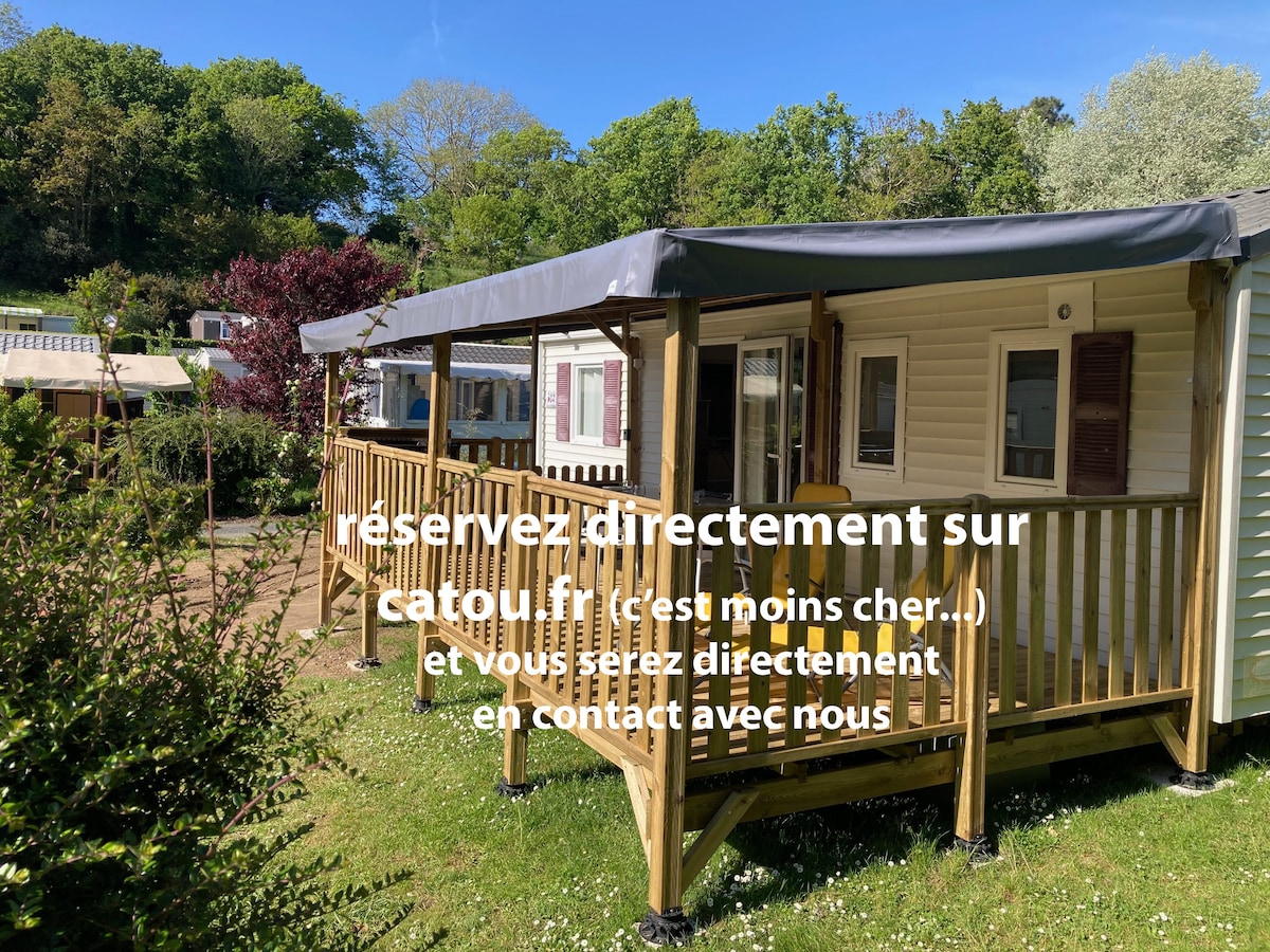 M-home 35 m2 chez catou .fr à Kerfany Plage en bord de mer Grande terrasse couverte, 2 chambres, cuisine équipée : gazinière, four et micro-ondes, hotte, cafetière, bouilloire, grille-pain, TV connectée internet wifi gratuit (Starlink 250Mb/s) dédié au logement Animaux propres et sympas bienvenus Petit camping familial au calme, à 100m de la plage et du sentier côtier, 50m de la forêt, à 3 km des commerces (supérette, tabac, pharmacie...) et à coté de Concarneau, Pont-Aven ou Lorient