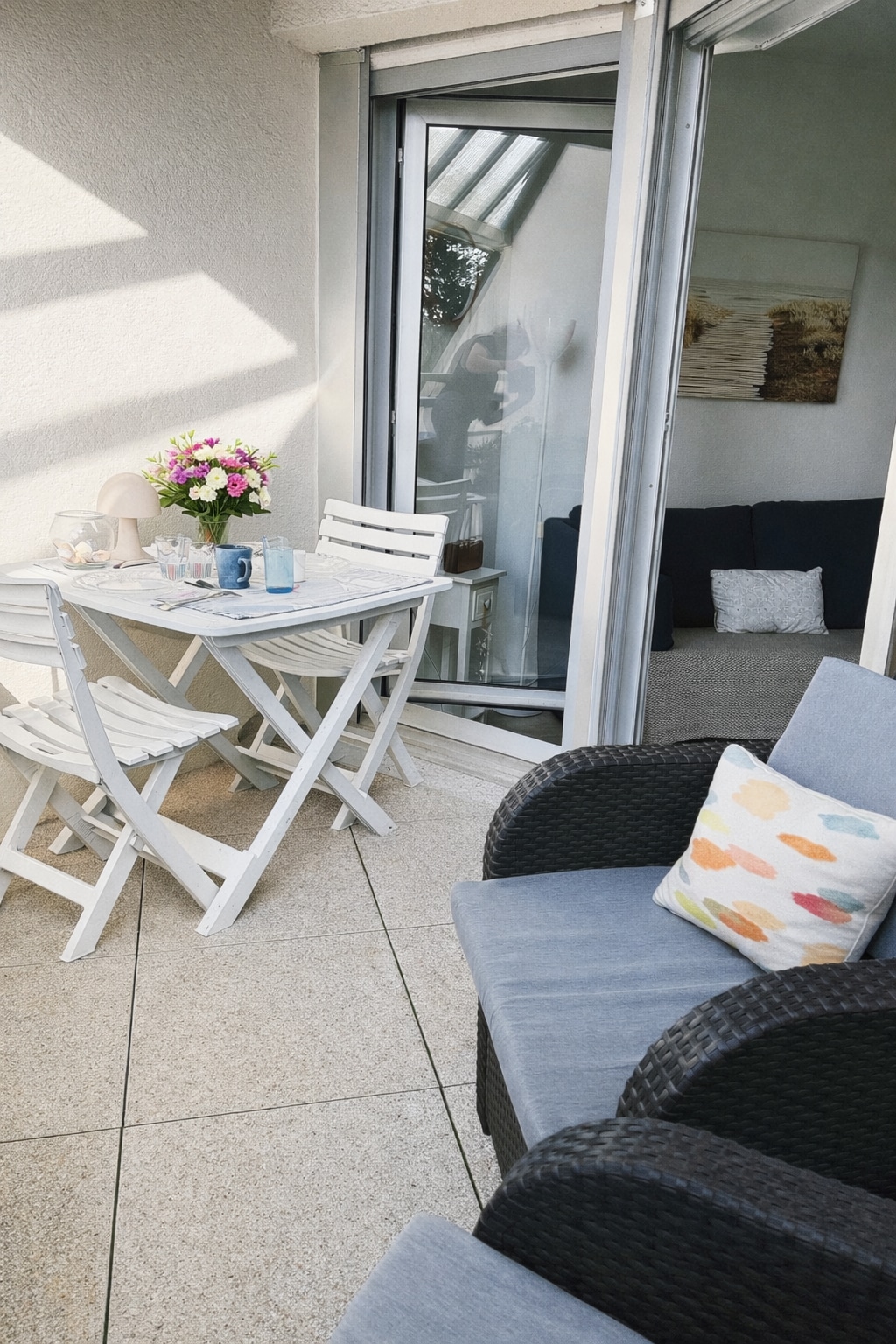 “Belles de Bretagne” offers you a 33 m2 studio on the 2nd floor with elevator. Comfortable furnishings: living/dining room with a FOLDABLE bed (1 x 160 cm, long 200 cm), TV. Kitchen (dishwasher, electric hob, fridge) electric kettle, electric coffee maker, espresso machine). Shower/WC. Washing machine. Balcony. Beautiful sea view. Parking space. Bed and bathroom linen extra. The cleaning will be done by you. Don't forget to add to your reservation if you are coming with your pet.