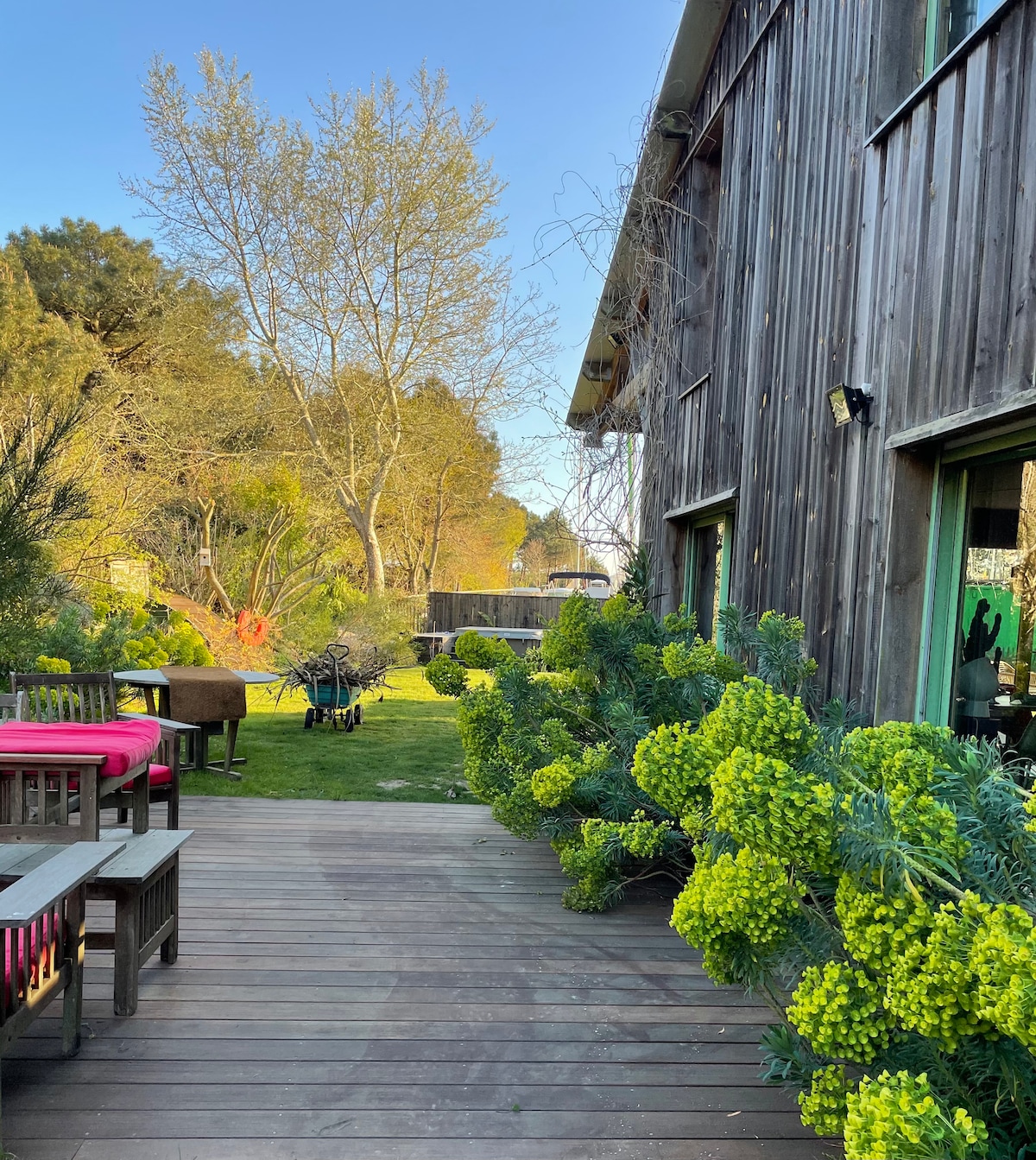 Mitoyenne de L'Aff & Zen, L'Aff et Papillon est adaptée aux Personnes à Mobilité Réduite ( rdc), sans compromis sur l'élégance ! S'en dégage une ambiance de sérénité privilégiant les matières nobles et ultra cosy... Pour votre bien être: PISCINE INTERIEURE CHAUFFEE TOUTE L'ANNEE, SAUNA INFRAROUGE (séance en option et sur réservation) et JACUZZY sous les étoiles. Idéalement situé entre le Golf du Morbihan , la Gacilly et à 2 pas de la forêt de Merlin ! Nous sommes sur les lieux , discrets!