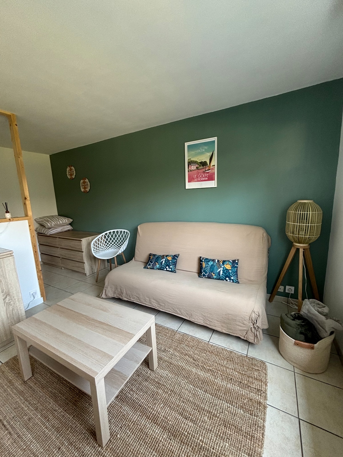 Appartement en rez-de-jardin, au sein d'une résidence de standing sécurisée. Parking privé couvert. Emplacement privilégié pour profiter pleinement de votre séjour en Morbihan Sud ! Commerces au pied de la résidence (boulangerie, supermarché, glacier), ainsi que la promenade de la Rabine, aménagée pour les loisirs en plein air (pétanque, jeux pour enfants, mobilier de détente. 10 min à pied : le centre historique ou la plage. 1 chambre + lit bébé / Animaux payants