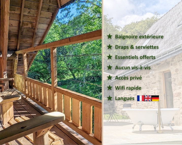 ★ UNIQUE ★ This charming Breton cottage, cozy and renovated by a heritage architect, offers a peaceful setting in the countryside, close to the forest and the seaside. Perfect for nature and stargazing lovers, it features a secluded outdoor bathtub, direct access to a private woodland, and a warm ambiance. Ideal for exploring Brittany and unwinding, this spot combines authentic charm and modern comfort for an unforgettable stay.