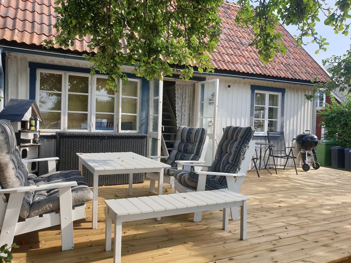 This in not an ordinary place to stay. You live just by the ocean in the middle of nature and bird life. Beautiful settings and surroundings. Secluded get away ideal for couples. The view is spectacular from this little house. It's renovated 2016 with a complete small kitchen with oven/micro oven, refrigerator, small freezer and induction cooker. The bathroom has a shower, toilet and basin. There are garden furnitures by the cottage. Free parking for car or caravan. Must be experienced!