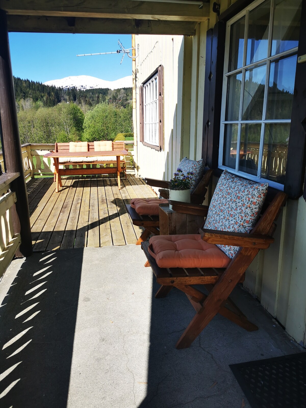Koselig hus med hage og terrasse midt i Sæbø sentrum, omkrinset av Sunnmørsalpene, med utsikt mot Hjørundfjorden og dei storslåtte fjellene Saksa og Slogen. Det er gåavstand til to matbutikker, nisjebutikker, hotell, bakeri, campingplasser, fjordsauna og en liten sandstrand med felles grill/uteområde. Det er gåavstand til buss, skyssbåt og ferge Sæbø-Leknes/Urke. Sæbø er et godt utgangspunkt fra enkle til spektakulære toppturer. I sesong kan man fiske laks i Bondalselva ( kjøp fiskekort butikk)