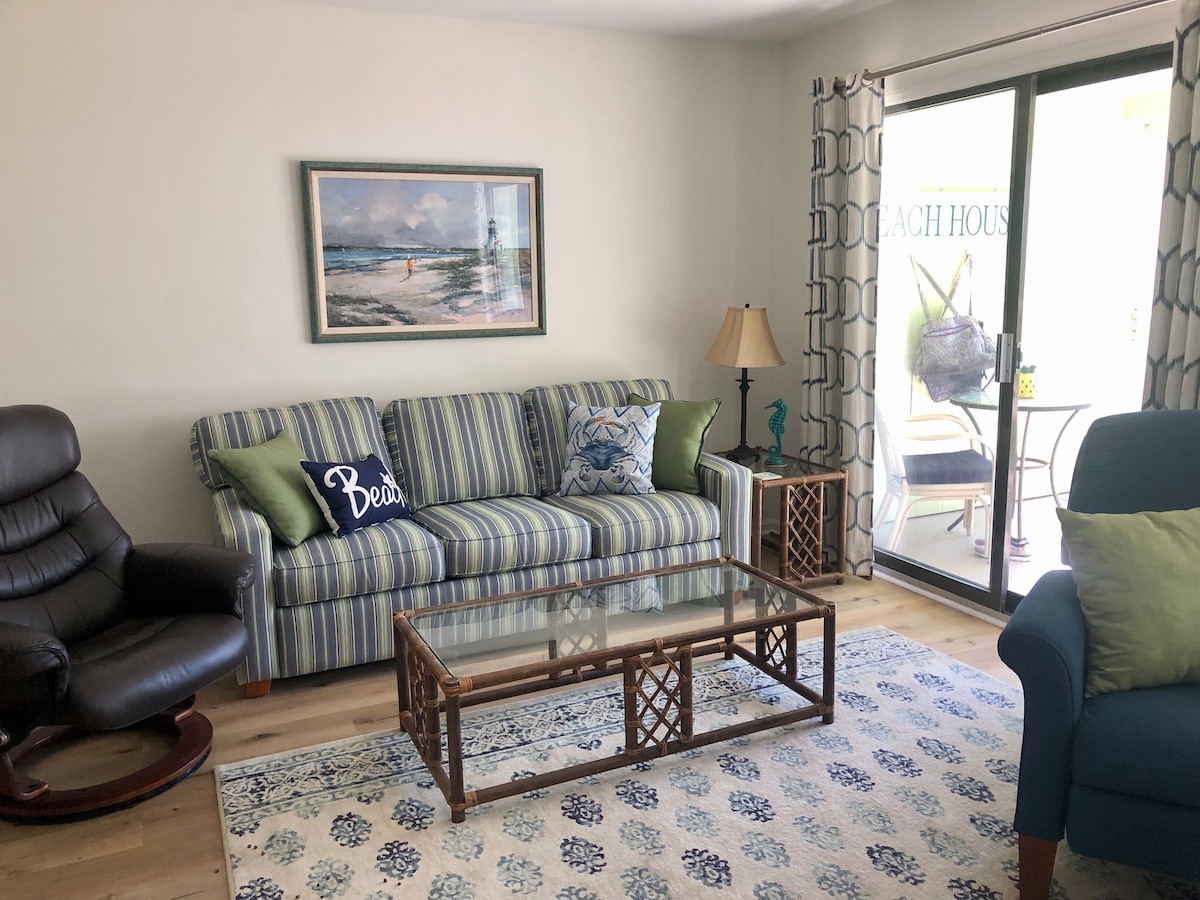 Renovated cozy, comfortable, well appointed third floor walk up studio (no elevator) in gated Pebble Beach Community. Studio is walking distance to the beach and overlooks the courtyard. Along with enjoying the beach, remember to also take advantage of the community amenities. The community has two outdoor pools and one heated indoor pool, tennis courts and a fitness center. There are several adorable boutiques, restaurants, and Publix is located within a mile. Please note * 3rd floor walk up*