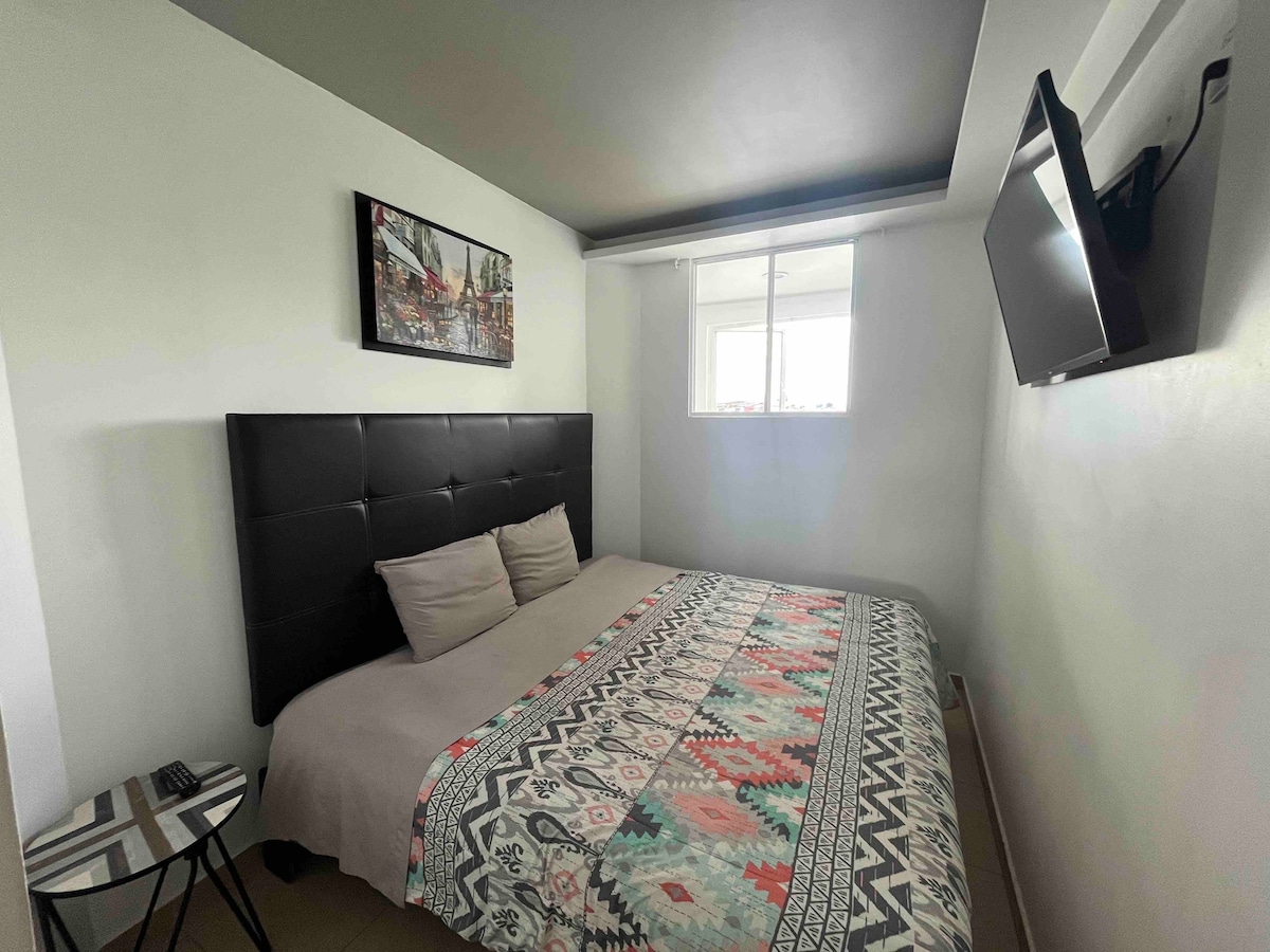 La mejor zona de la ciudad, excelente ubicación. Lugares cercanos: Restaurantes, centros comerciales, Gym y zona bancaria, además de estar a tan solo 10 minutos del centro histórico 2 habitaciones (King/Queen) cada una con baño completo, sofá cama con colchón individual en sala Cocina equipada, sala comedor y acogedora terraza 2 Cajones de auto pequeño en linea Wifi/Netflix/HBO/Star+