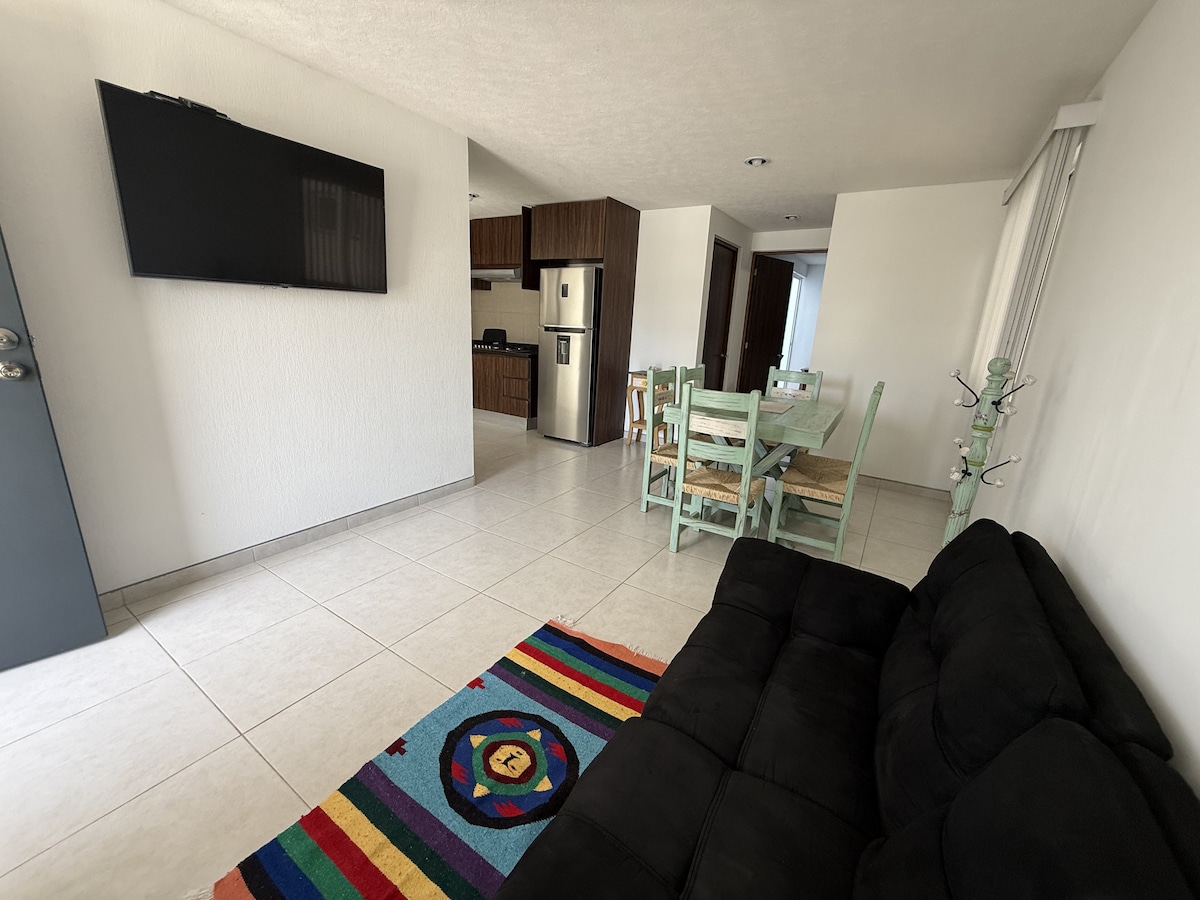 El departamento es muy acogedor, con un estilo interior vintage mexicano, propio al contexto colonial que lo rodea. La vista hacia el jardín es exuberante por sus de frondosos árboles y vegetación. Cuenta con dos recamaras, una de las recamaras ofrece un cómodo sofá cama y la otra, una cama matrimonial, dos estancias de convivencia y una terraza para disfrutar la vista o bien cocinar en un asador tradicional. Aprovechen la oportunidad!!!