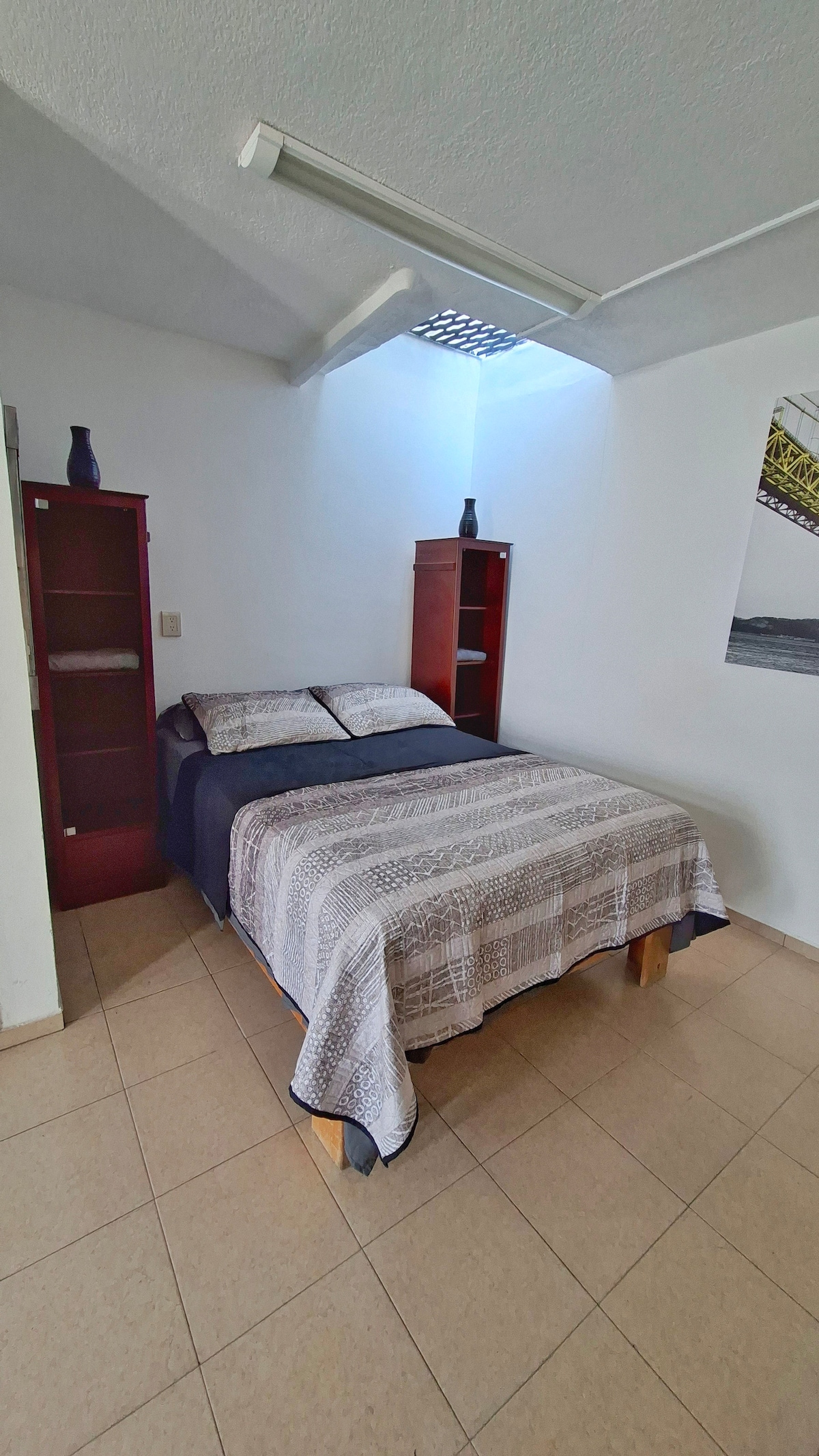 Un concepto muy peculiar, con lo necesario para descansar y planear las aventuras del día , una cocina sencilla ,una salita de relax y una amplia recamara para dormir a gusto, el primer piso(planta baja) es un pequeño centro holístico , caminando llegas a catedral en 5 minutos , un mercado tradicional a un minuto a pie ,varios lugares de comida alrededor , la calle tiene un bello camellón y una fuente de agua casi enfrente. bancos, farmacias,restaurantes,bares y lugares de baile a 3 minutos .