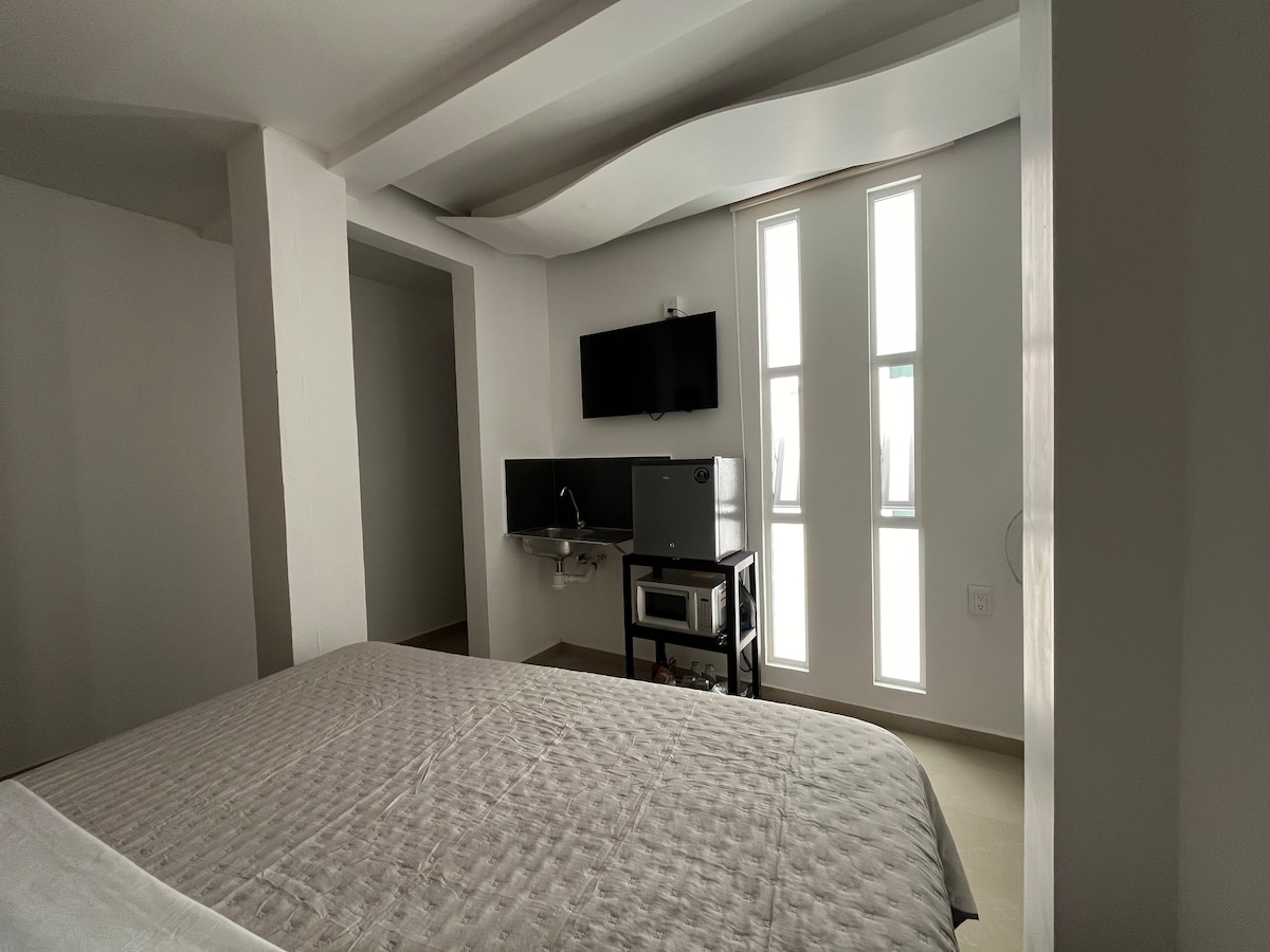 Enjoy a stylish experience at this historical downtown studio. You will be just within walking distance from the cathedral and the “Mercado Independencia”. Lots of restaurants and outside cafes within walking distance. This studio room has its own entrance from the street and is completely independent.