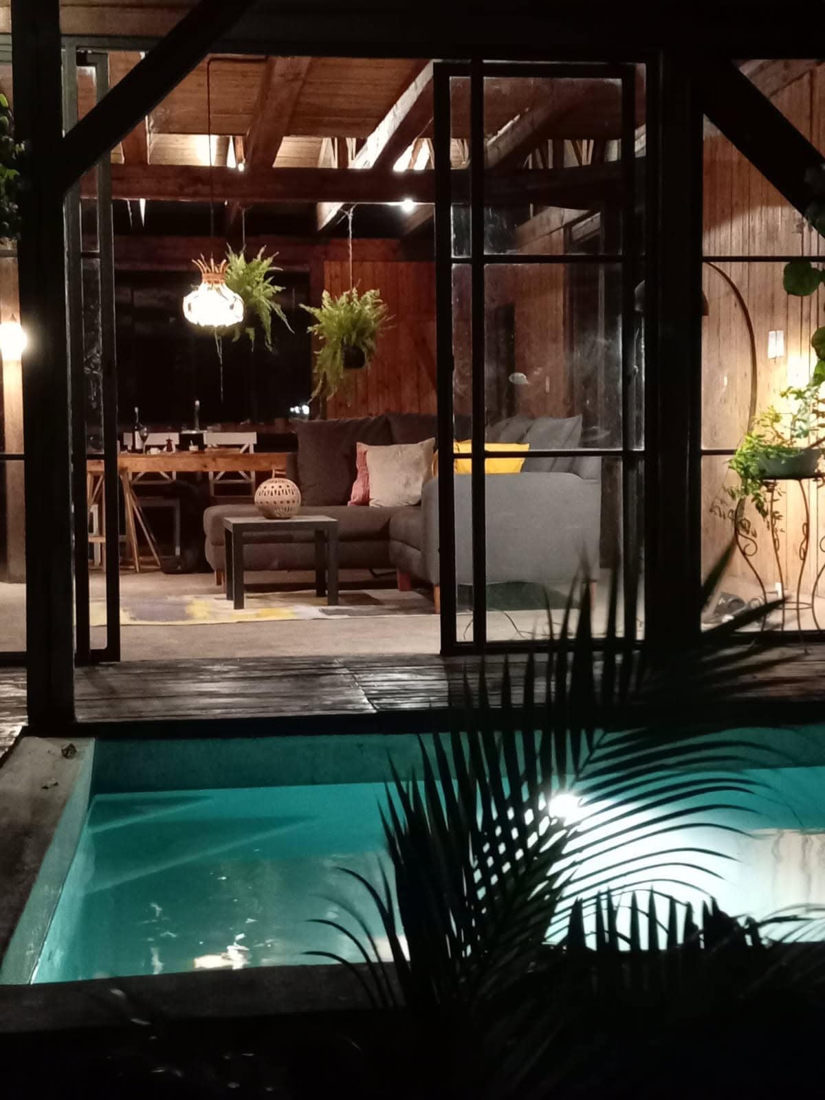Casa Galería sumergida entre árboles de más de 100 años en el bosque poco explorado de Tepoztlán Morelos, con alberca climatizada y una red de descanso para mirar el universo de día y de noche, los muros adornados por fotos de artistas del pueblo y una escultura destaca en su interior. Diseñada por una firma especializada en alojamientos únicos y originales que se especializa en la experiencia del usuario, descúbrela junto con tu familia, se encuentra en un fraccionamiento cerrado.