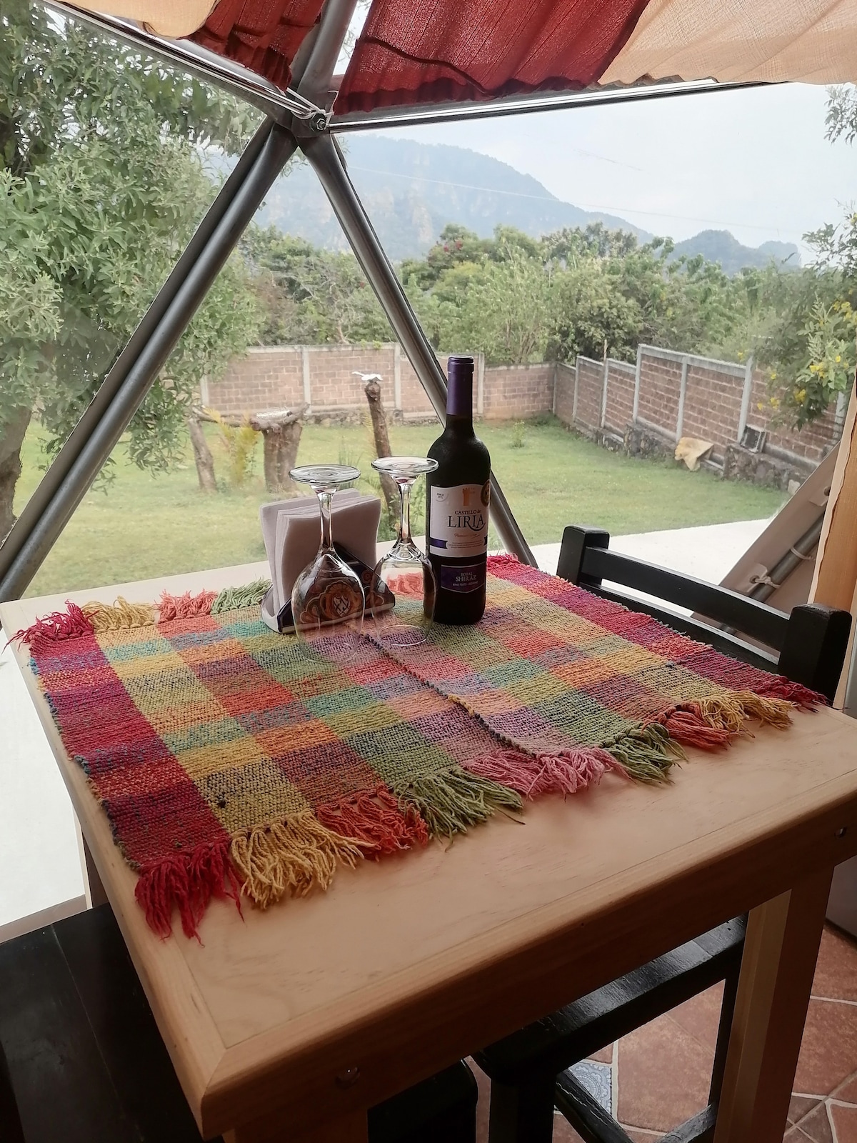 Escápate con tu pareja a una experiencia original en nuestro Domo geodésico, ubicado en Quinta Amatzinac con una vista espectacular al cerro de Chalcatzingo. Un espacio íntimo que combina el contacto con la naturaleza con todo el confort: cama King Size, baño privado, aire acondicionado, WiFi, cafetera y mini refrigerador. Disfruten de su terraza y patio privado, con hamacas y una pérgola con camastro doble para momentos de descanso y complicidad. Ideal para reconectar y dejarse sorprender.