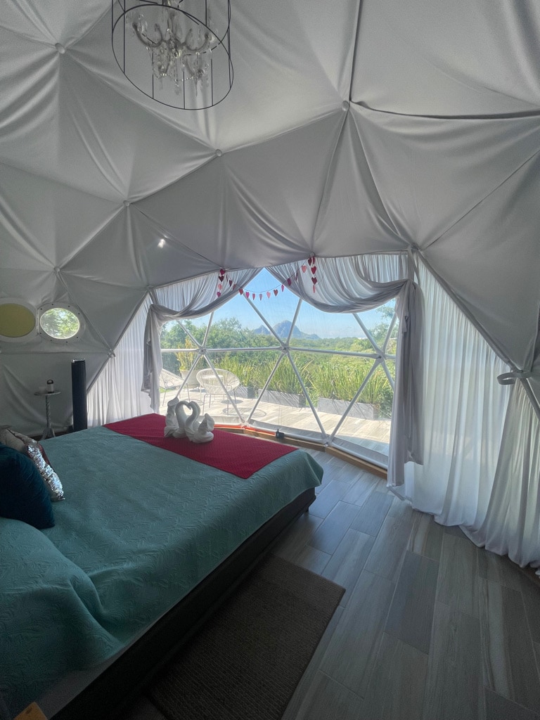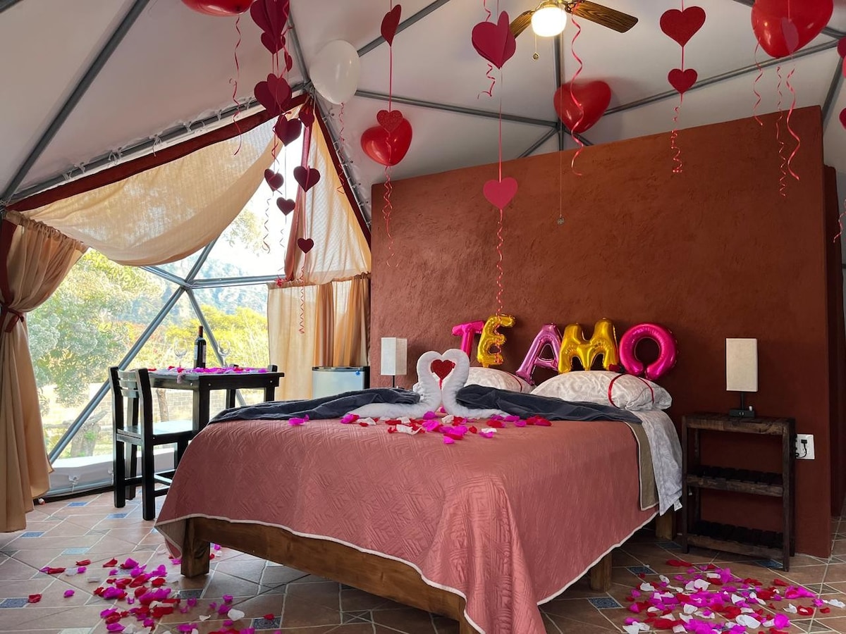 Domo Aulex, habitación completa con baño privado con agua caliente y acceso a piscina con agua templada, muy cerca a diferentes pueblos de Morelos. Vive la experiencia bajo las estrellas y en un ambiente privado lleno de naturaleza. Reserva entre del 1 al 14 de Febrero y recibe una botella de vino gratis. (habitación decorada no incluida)