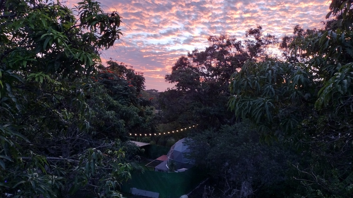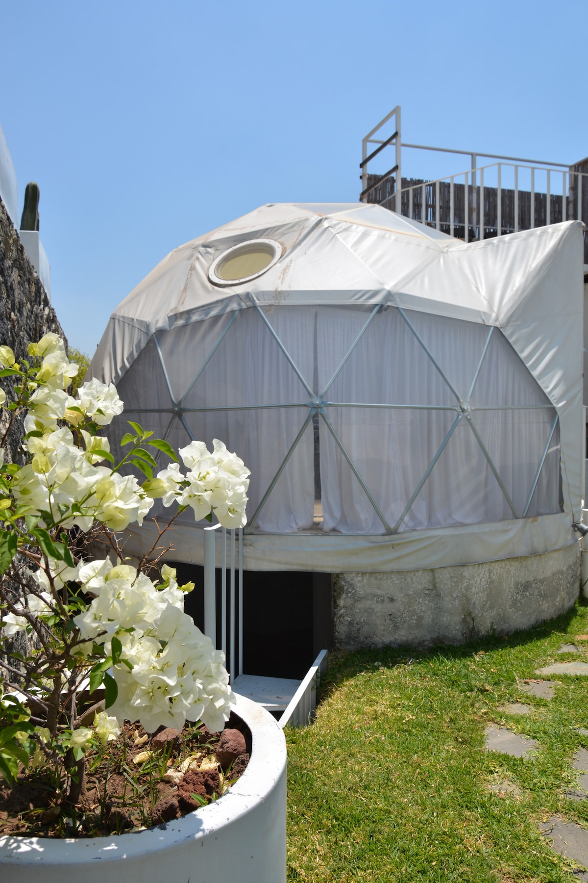 Aléjate de todo y duerme en un capullo de tierra con techo celeste. El domo de tierra es un capullo que te envuelve y te permite mirar las estrellas y el cielo a través de su ventana más grande: su techo tragaluz. Está en medio de la naturaleza, alejado de todo. El Domo cuenta con una terraza al exterior con cocina, regadera con agua caliente y baño seco. Contamos con un buen wifi satelital que cubre domo y terraza.