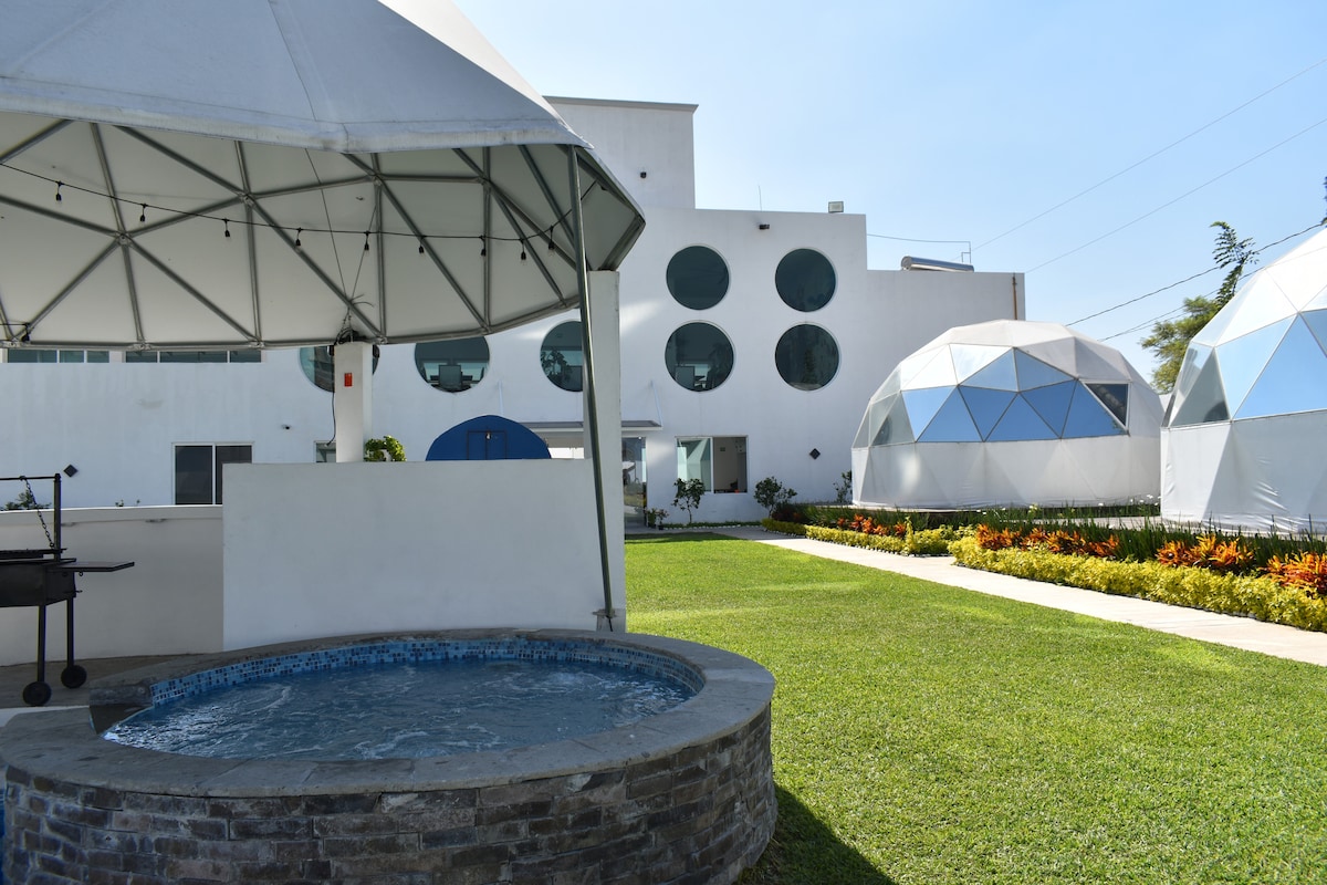 Domo Aulex, habitación completa con baño privado con agua caliente y acceso a piscina con agua templada, muy cerca a diferentes pueblos de Morelos. Vive la experiencia bajo las estrellas y en un ambiente privado lleno de naturaleza. Reserva entre del 1 al 14 de Febrero y recibe una botella de vino gratis. (habitación decorada no incluida)