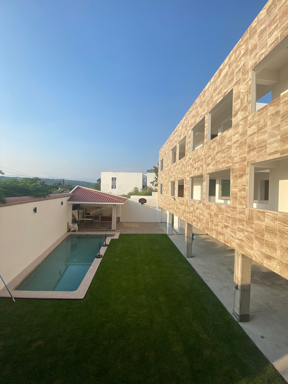 Beautiful guesthouse in a gated community with 24-hour security. All the comforts of home with wifi, cable tv, and a beautiful garden with a large solar-heated pool and palapa. The location is excellent: within walking distance to restaurants, banks, language schools, a supermarket, and close to the downtown area.