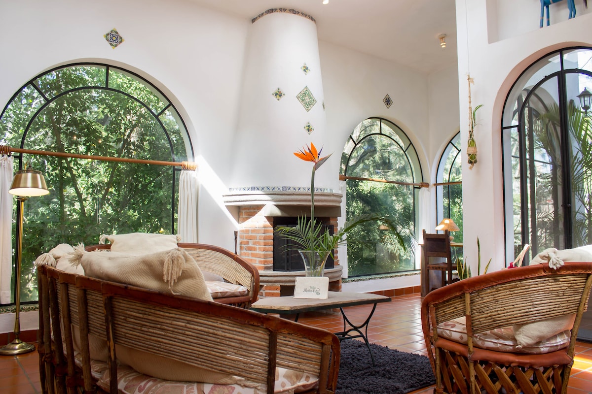 Villa Escondida is a private casita with an ensuite tile bathroom w/ natural, herbal amenities of shampoo, conditioner & soap w/ luxurious hand, face & bath towels and hair dryer. Fully equipped kitchen shares the light-filled living areas with balcony overlooking gardens to enjoy alfresco meals. Ample living room/dining area with fireplace and smart TV w Roku.These eight homes are surrounded by manicured tropical gardens, a magestic 40 ft. tile pool/cabaña in a upscale neighborhood.