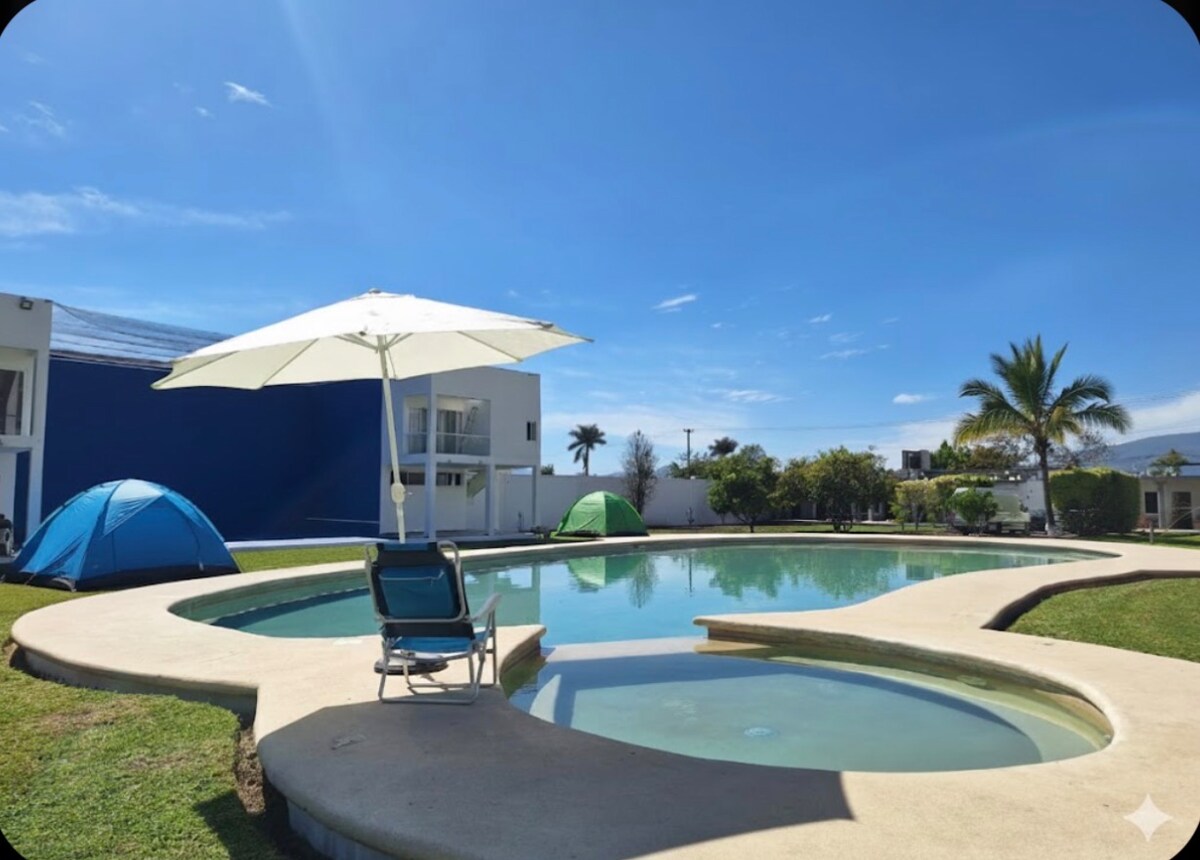¡Vive la experiencia de acampar en un lugar seguro con comodidades! Jardín con las amenidades que tu necesitas para pasar unos días inolvidables rodeado de naturaleza Relájate en este lugar en donde la tranquilidad se respira Ven a disfrutar de un merecido descanso en un lugar especial a 8 minutos del centro de Yecapixtla a 15 minutos del centro de Cuautla Muy bien ubicado, pongo a tu disposición 4 casas de campaña ya instaladas para cuando tu llegues Excelente lugar de esparcimiento