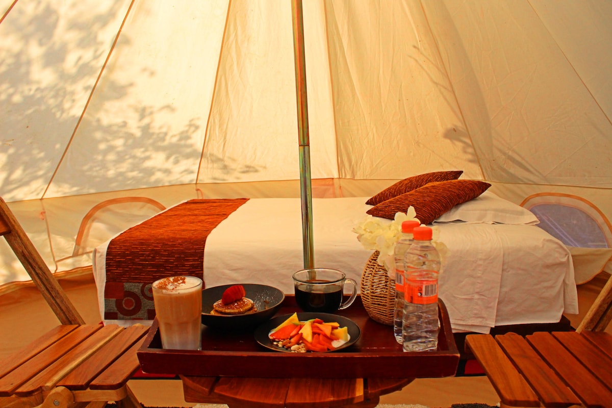 Vive una experiencia única y natural en el valle místico de Tepoztlán, alójate en una tienda safari con todas las comodidades a sólo 1 hr de la Cd. de México. Si eres un amante de la naturaleza, nuestro glamping te ofrece la escapada perfecta para disfrutarla con todas las comodidades, duerme bajo el brillo de las estrellas y da la bienvenida a los rayos del sol al amanecer. Jacuzzi personal, Senderismo, Masajes, Mountain Bike y caballos son algunos de los servicios que podrás disfrutar!