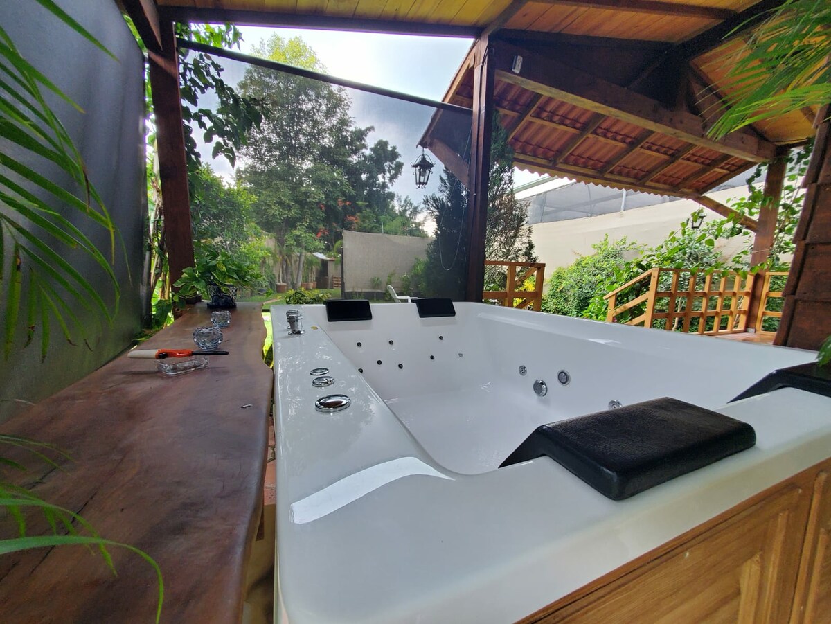 Cabaña en Cocoyoc Morelos con Jacuzzi. Disfruta de una cabaña privada ideal para desconectarte y vivir una experiencia única. Perfecta para parejas que buscan descanso, tranquilidad y comodidad. Aquí podrás despertar con el sonido de la naturaleza, respirar aire puro y disfrutar de momentos inolvidables lejos del ruido de la ciudad. SI buscas una escapada romántica o simplemente un refugio para descansar, esta cabaña es para ti