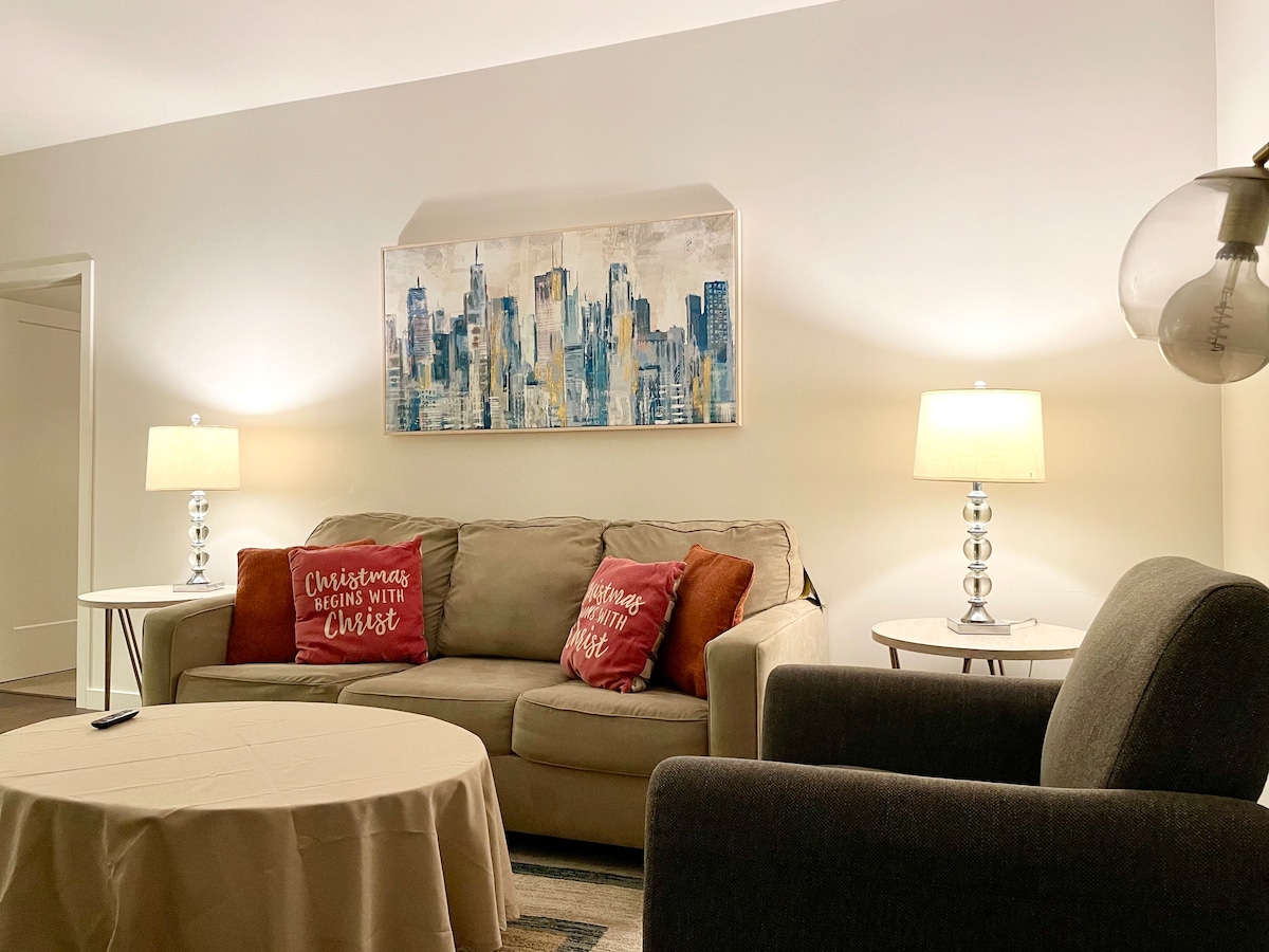 Stay at Bear Suites - Village Inn, American Black Bear Suite in the heart of Big Bear Lake Village. Access this cozy haven via a flight of stairs, revealing a kitchen and ambient gas fireplace. Nearby, explore eateries, theaters, boutiques, and the shimmering lake. Sleep soundly in a king bed with additional living room accommodations. Fresh mountain air. Experience Big Bear's unique charm. City of Big Bear Lake STR Permit: VRR-2023-0653.