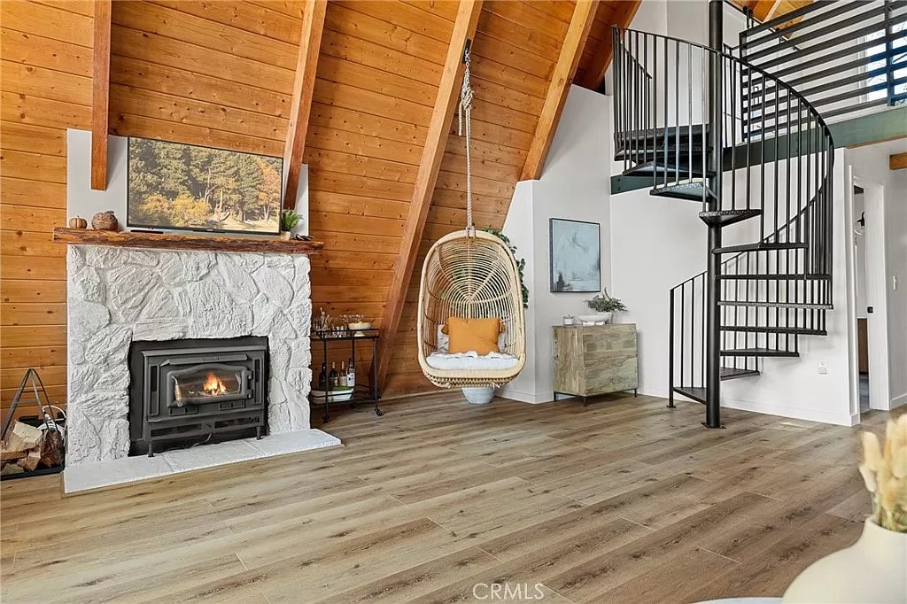 As you walk up stairs passing native boulders and trees, you see an A-frame cabin in the woods begin to peek out, inviting you. Once upon the front deck, the large pane windows draw you into this spacious, high-ceiling, open-concept cabin. Inside, these same windows that drew you in, will encourage the same gazing now, except outwardly. Tastefully designed and relaxing, you may not want to leave, though Big Bear, and Lake Arrowhead all beckon within 30 mins drive... Welcome to The Scandia 🦌